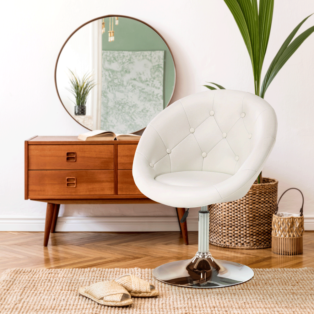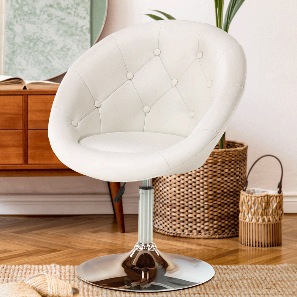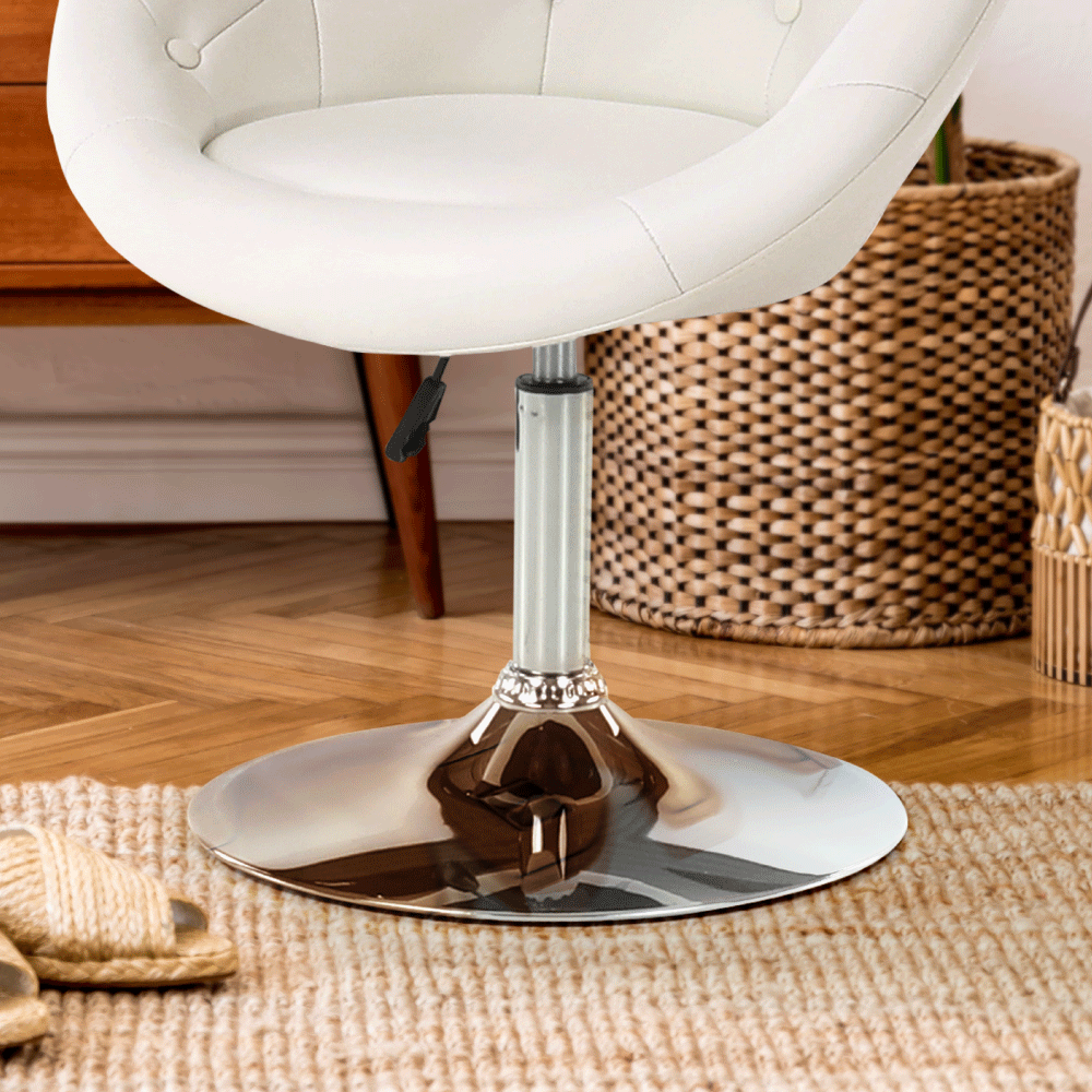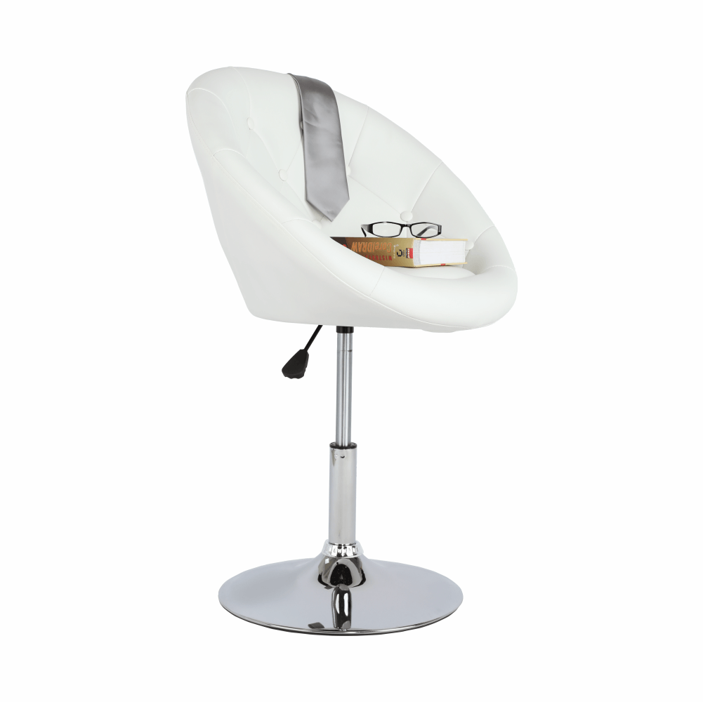 Materiál: ekokoža/kovOderuodolnosť textílie podľa testu Martindale: 100 000 oderovFarebné prevedenie: biela/chrómRozmery (ŠxHxV): 64x56x79-94 cmVýška sedu: 44-59 cmHĺbka sedu: 42 cmŠírka sedu: 36 cmVýška chrbtovej opierky: 37 cmŠírka chrbtovej opierky: 64 cmNosnosť: 100 kgS mäkkým sedadlomOtočnéS prešívanou opierkou chrbtaNsdtaviteľná výška seduDodávaný v demonte.