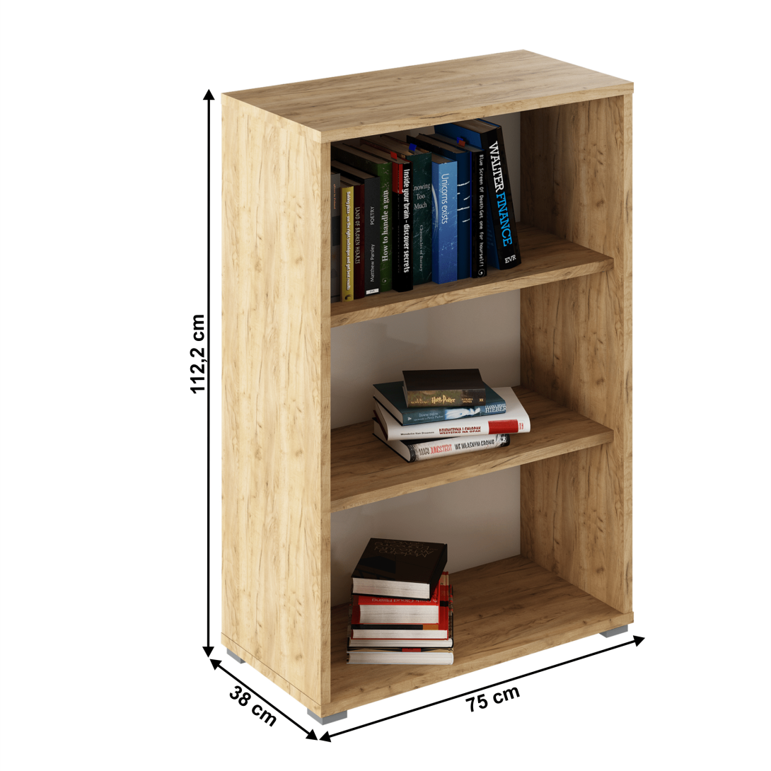 Otvorený regál RIOMA TYP 4Materiál: DTD laminovanáFarba: dub artisan/bielaPolicový regál (ŠxHxV): 75x38x112,2 cmHrúbka lamina 22 mmDve policeKvalitný slovenský výrobokDodávané v demonte