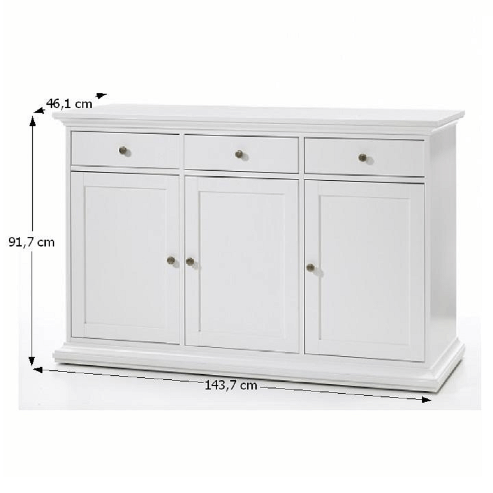Komoda PARIS 3D3Z 77824Materiál: fóliovaná DTD/lakovaná MDFFarebné prevedenie: bielaRozmery (ŠxHxV): 143,7x46,1x91,7 cmHrúbka materiálu: 18 mmDodávané v demonte.