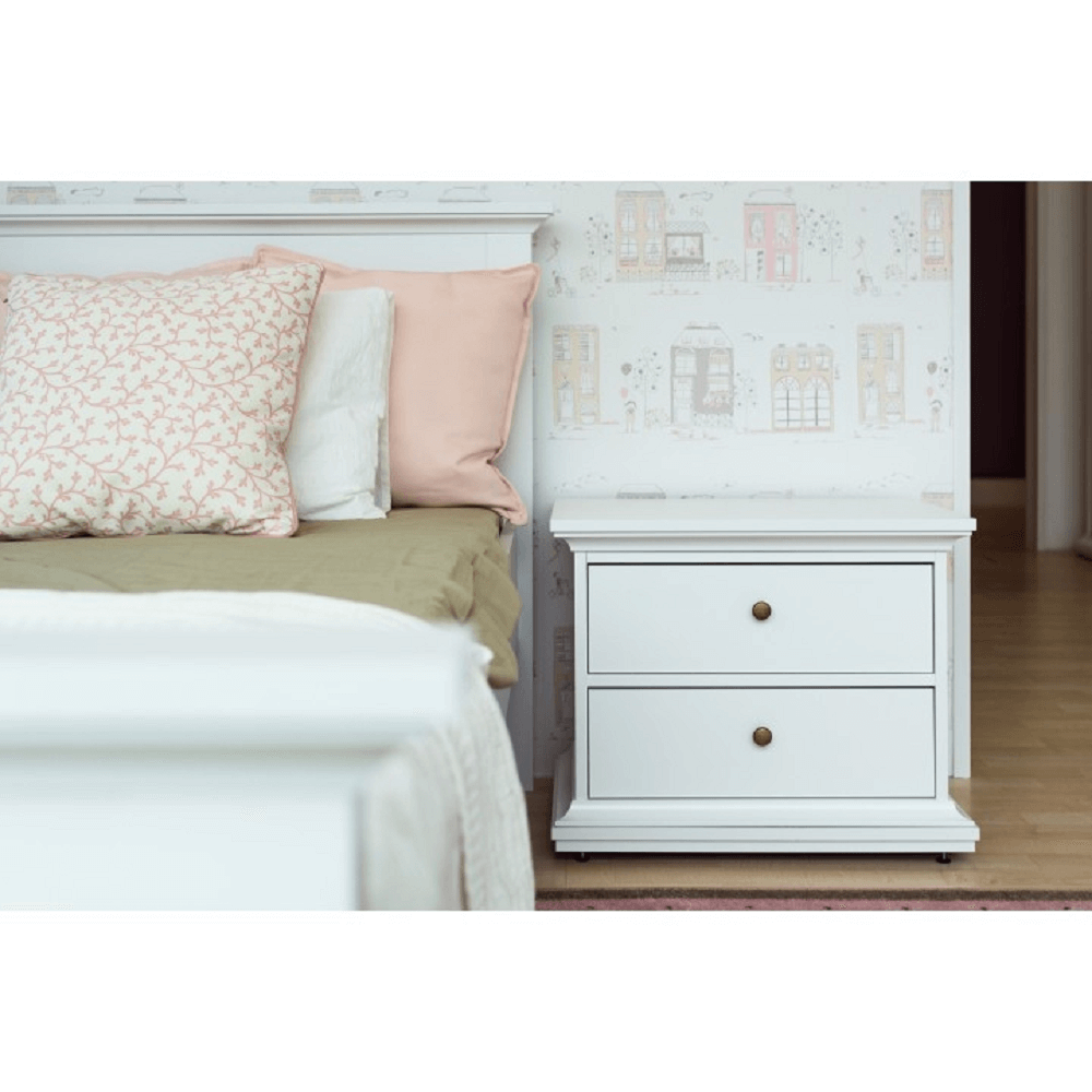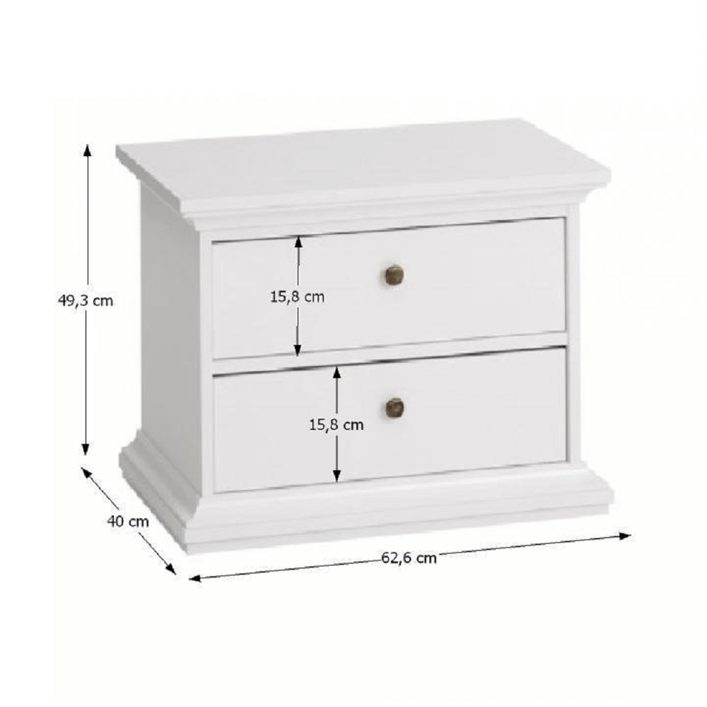 Nočný stolík PARIS 70301Materiál: fóliovaná DTD/lakovaná MDFFarebné prevedenie: bielaRozmery (ŠxHxV): 62,6x40x49,3 cmHrúbka materiálu: 18 mmDodávané v demonte.