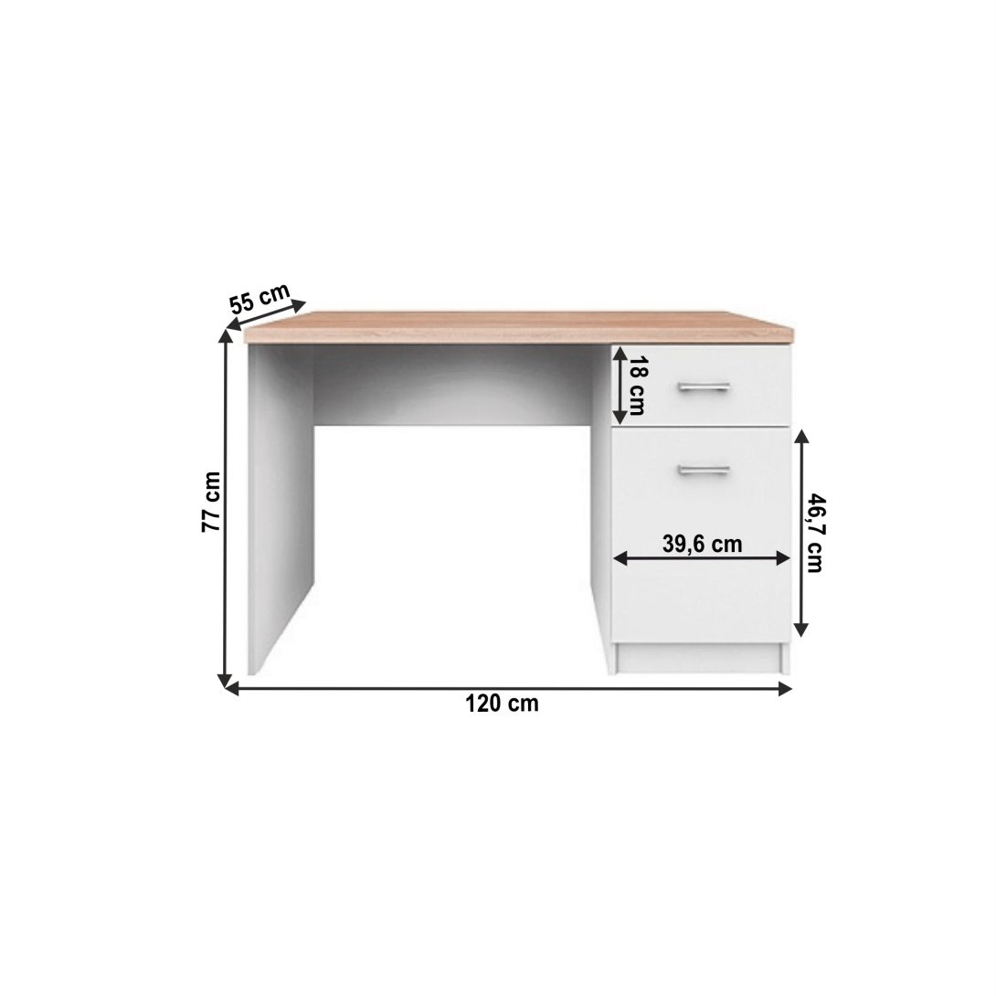 PC stôl 1D1S TOPTY TYP 09Materiál: DTD laminovanáPrevedenie: biela/dub sonomaRozmery (ŠxHxV): 120x55x77 cmHrúbka materiálu: 16 mmDodávané v demonte.