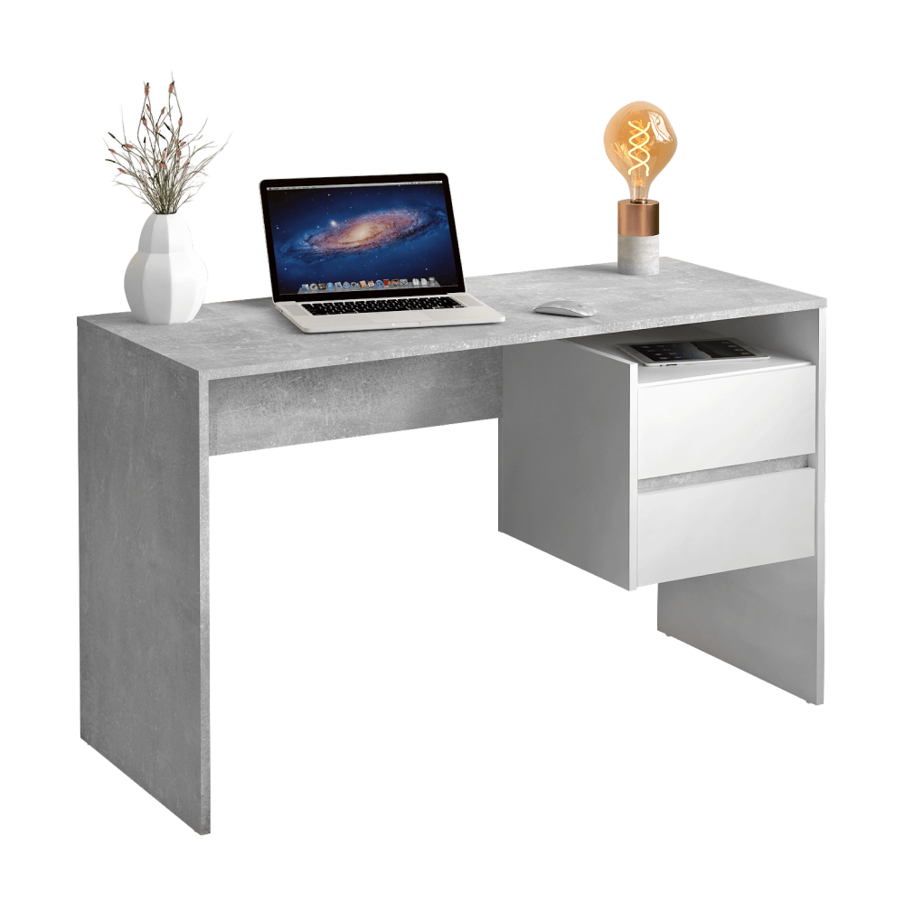 KONDELA PC stôl, betón/biely, TULIO NEW