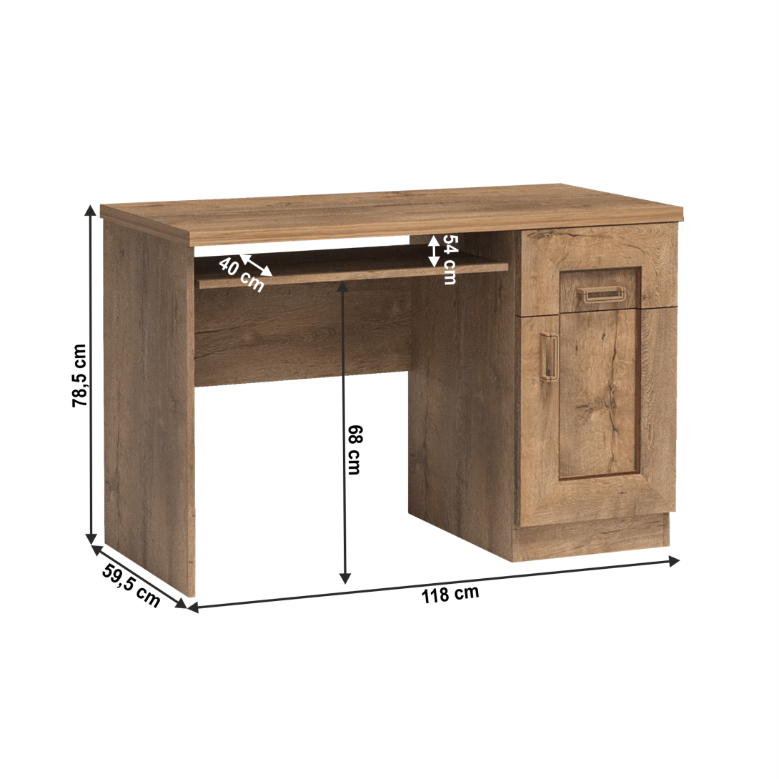 PC stôl TEDY TYP T19Materiál: DTD laminovaná/ABS hrany/MDFFarba: dub lefkasRozmery (ŠxHxV): 118x60x78 cmHrúbka materiálu: 32 mmHrúbka materiálu zvyšné časti: 16 mmDodávané v demonte.Na objednávkuDodacia lehota 8-10 týždňov.