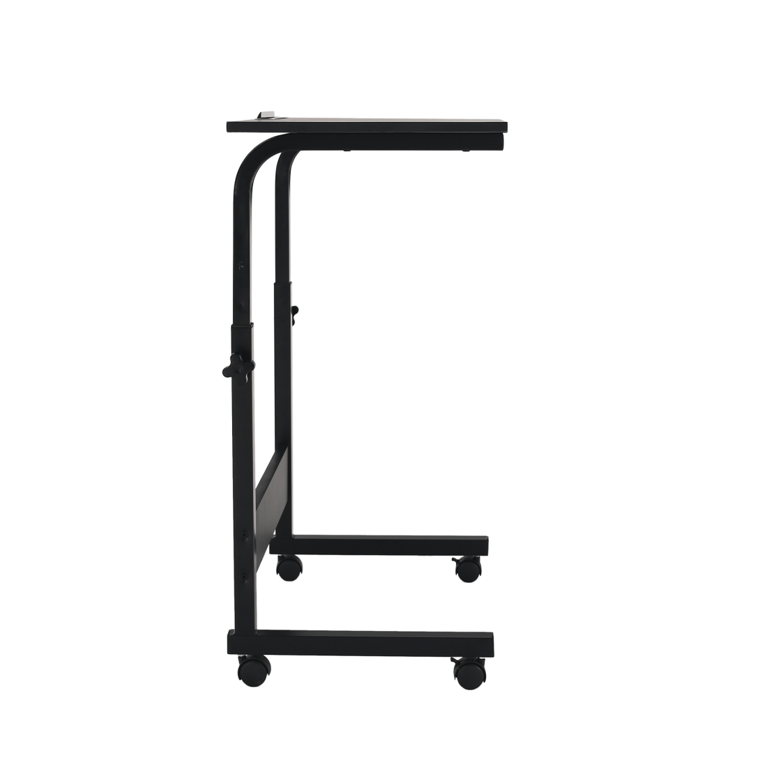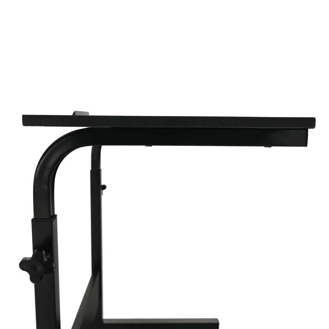 Materiál: MDF s PVC fóliou/kovFarba: čiernaRozmery (ŠxHxV): 60x40x70-90 cmPojazdnýNa kolieskachS dvomi brzdamiNastaviteľná výška stolaSo zárezom na tabletDodávaný v demonte