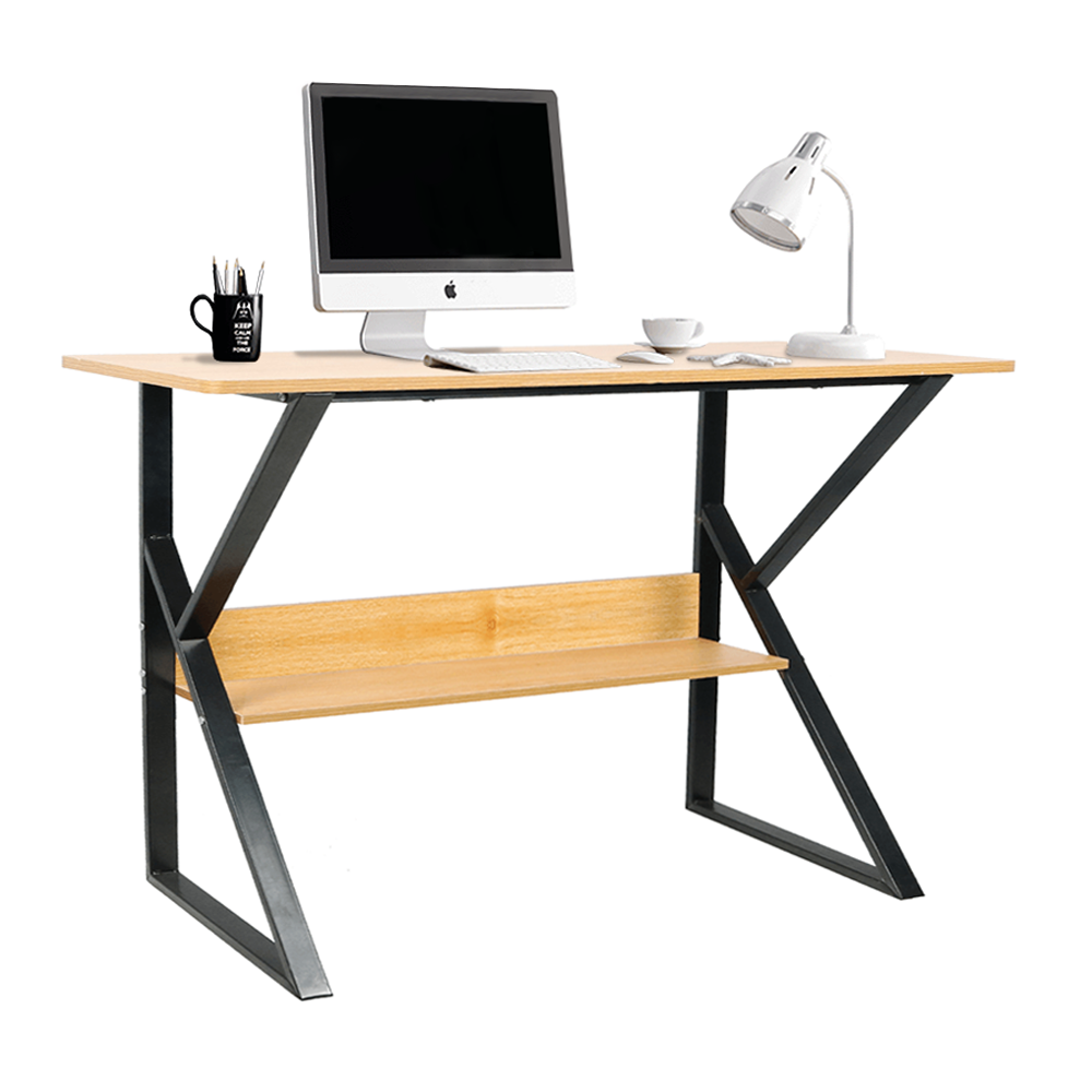 Materiál: MDF laminovaná/kovFarba: buk/čiernaRozmery (ŠxHxV): 100x60x72 cmHrúbka materiálu plátu stola: 18 mmHrúbka materiálu police: 15 mmHĺbka police: 17 cm Výška medzi policou a konštrukciou: 38 cmS policouDodávané v demonte