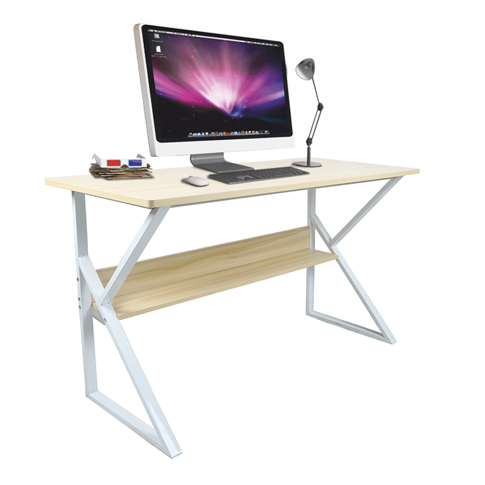 Materiál: MDF laminovaná/kovFarba: dub prírodný/bielaRozmery (ŠxHxV): 100x60x72 cmHrúbka materiálu plátu stola: 18 mmHrúbka materiálu police: 15 mmHĺbka police: 17 cm Výška medzi policou a konštrukciou: 38 cmS policouDodávané v demonte