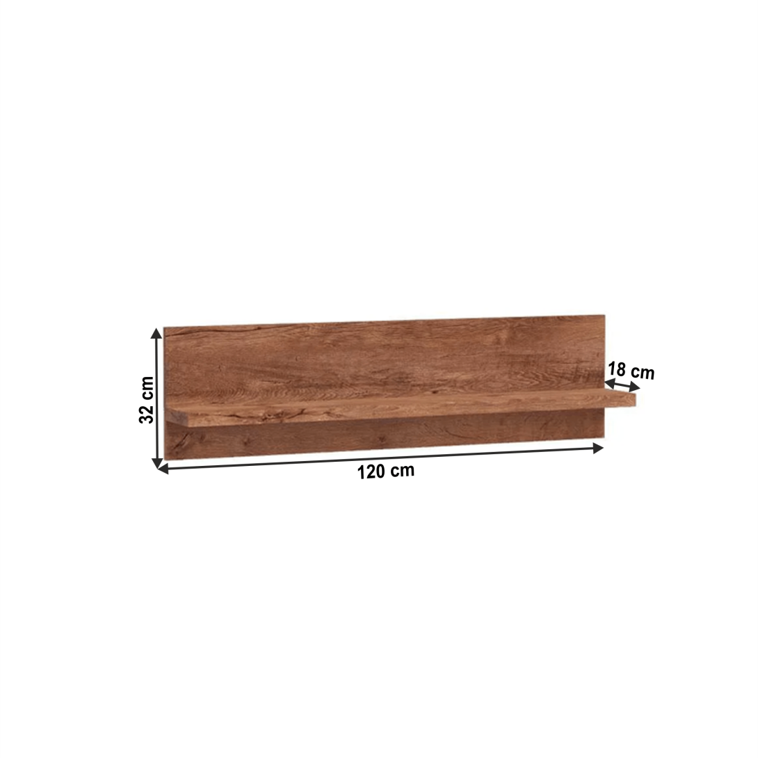 Polica 11 z luxusného sektorového nábytku Korpus hrubý 16/ 48 mm, úchytky kovovéMateriál DTD laminovaná, ABS hrany, farebné prevedenie: jaseň svetlý, Rozmery ŠxHxV: 120x18x32 cm. Dodávané v demonte.