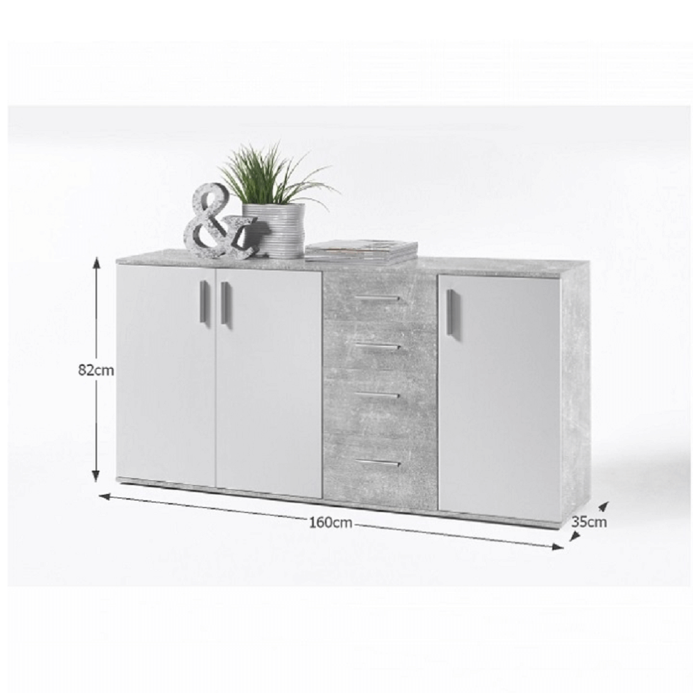 Komoda POPPY 3 Materiál: DTD laminovanáFarebné prevedenie: biela/betónRozmery (ŠxHxV): 160x35x82 cmDodávaná v demonte.