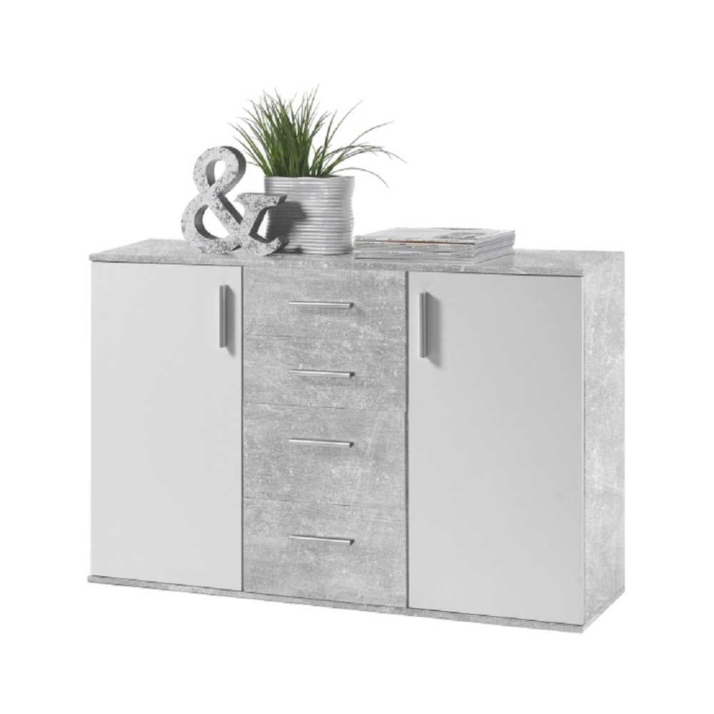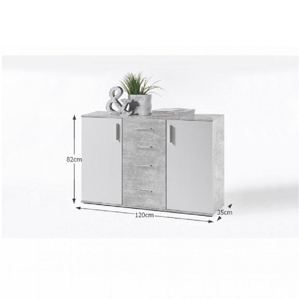 Komoda POPPY 5Materiál: DTD laminovanáFarebné prevedenie: biela/betónRozmery (ŠxHxV): 120x35x82 cmDodávaná v demonte.