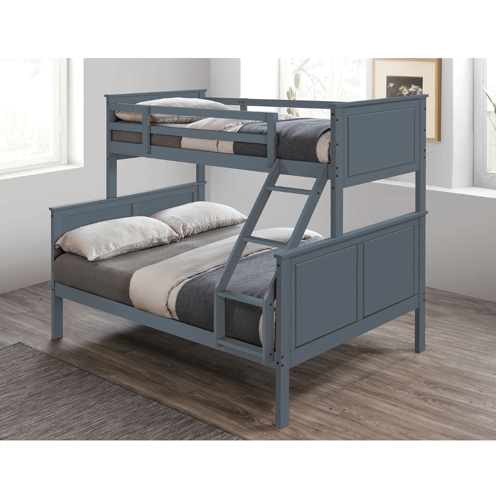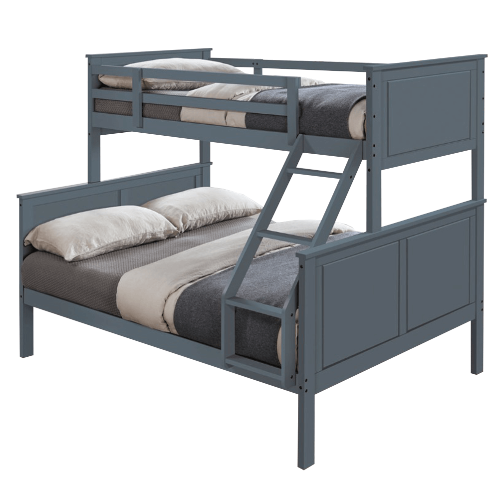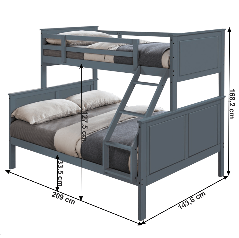 Materiál: masív/MDFFarba: siváRozmery (ŠxHxV): 209x143,6x168,2 cmPlocha na spanie spodné lôžko (ŠxH): 137x200 cmPlocha na spanie horné lôžko (ŠxH): 87x200 cmMatrac s max. výškou na horné lôžko: 12 cmNosnosť: 90 kg na jedno lôžkoDodávaná s latkovými roštamiVýška po rošt horné lôžko: 127,5 cmVýška po rošt spodné lôžko: 33,5 cmVhodná až pre 3 osobyRozložiteľnosť na 2 samostatné posteleRebríkRebrík môže byť z ľavej alebo pravej stranyDodávané bez matracaMožnosť zakúpiť matrace z našej ponukyDodávané v demonte