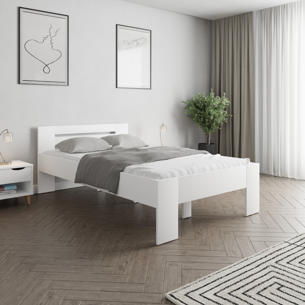 Materiál: laminovaná DTD/ABS hranyFarba: bielaRozmery (ŠxHxV): 145x203,6x75,5 cmPlocha na spanie (ŠxD): 140x200 cmHrúbka laminovanej DTD: 1,6-1,8 cmNa nožičkáchVýška spodného priestoru od podlahy: 25,1 cmPlastové klzákyVýška plastových klzákov: 0,5 cmVýška bočnice: 19,8 cmOdporúčaná minimálna výška matraca: 15 cmNosnosť: 160 kgJednolôžkováDodávaná bez roštu a matracaMožnosť zakúpiť rošt a matrac z našej ponukyModerný dizajnDodávané v demonte