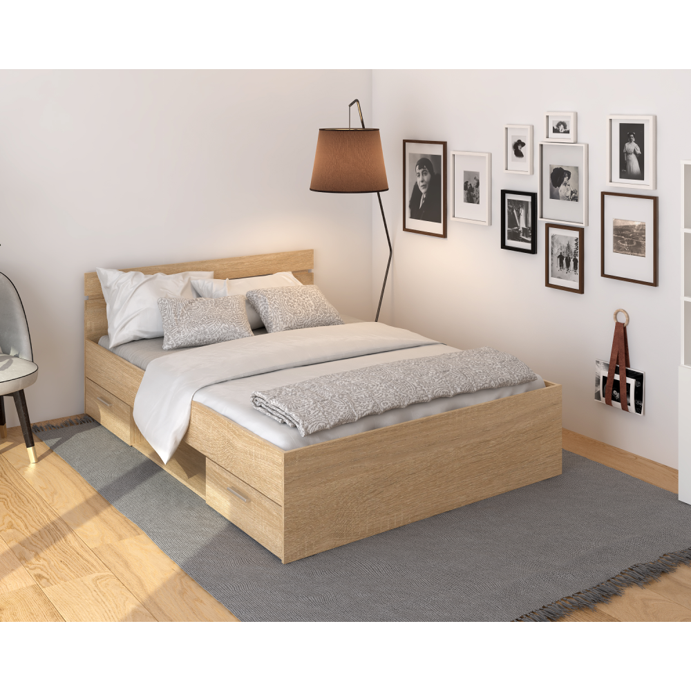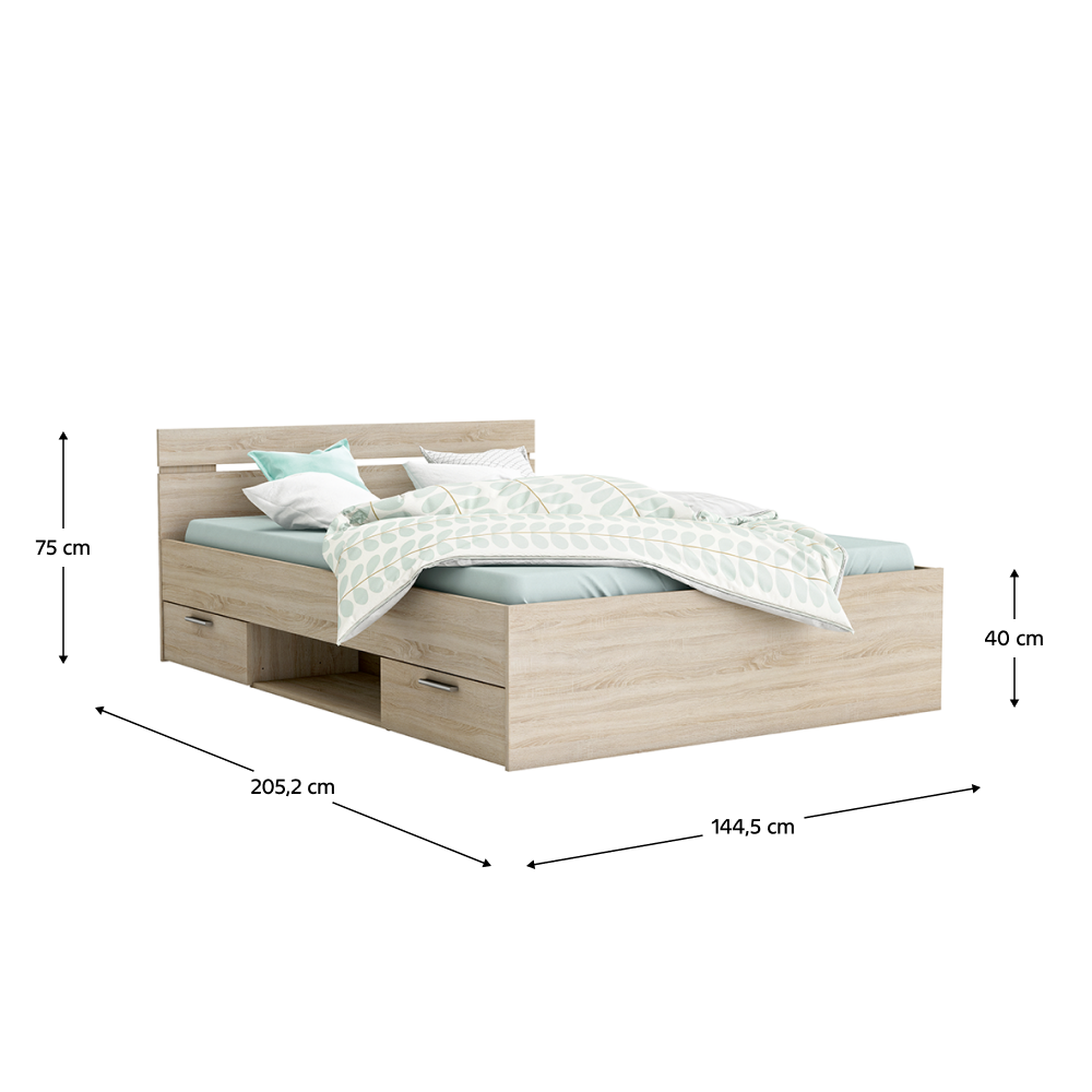 Posteľ MICHIGAN NEW so šuplíkmi a s odkladacím priestorom.Materiál: DTD laminovaná.Farebné prevedenie: dub sonoma.Rozmery (ŠxHxV): 144,5x205,2x75 cm.Výška spania: 40 cmVýška po rošt: 26 cmVýška matraca: 15 cm Plocha na spanie: 140x200 cm.Oba šuplíky sú rovnakej veľkostiK posteli je možné zakúpiť rošt v pevnom ráme 140x200 a matrac s rozmerom 140x200 cm na základe našej ponuky.Nosnosť: 2x100 kg