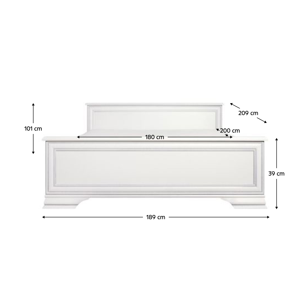 Materiál: DTD laminovanáFarba: alpská bielaRozmery (ŠxHxV): 189x209x101 cmPlocha na spanie (ŠxD): 180x200 cmVýška bočnice: 22 cmHrúbka materiálu: 1,6 cmNa nožičkáchVýška nožičiek: 8 cmDodávaná bez roštuOdporúčame zakúpiť samonosný rošt KENTAK z našej ponukyDodávaná bez matracaMožnosť dokúpiť matrac z našej ponukyOdporúčaná výška matraca: 16 cmNosnosť na osobu: 100 kgDodávané v demonte