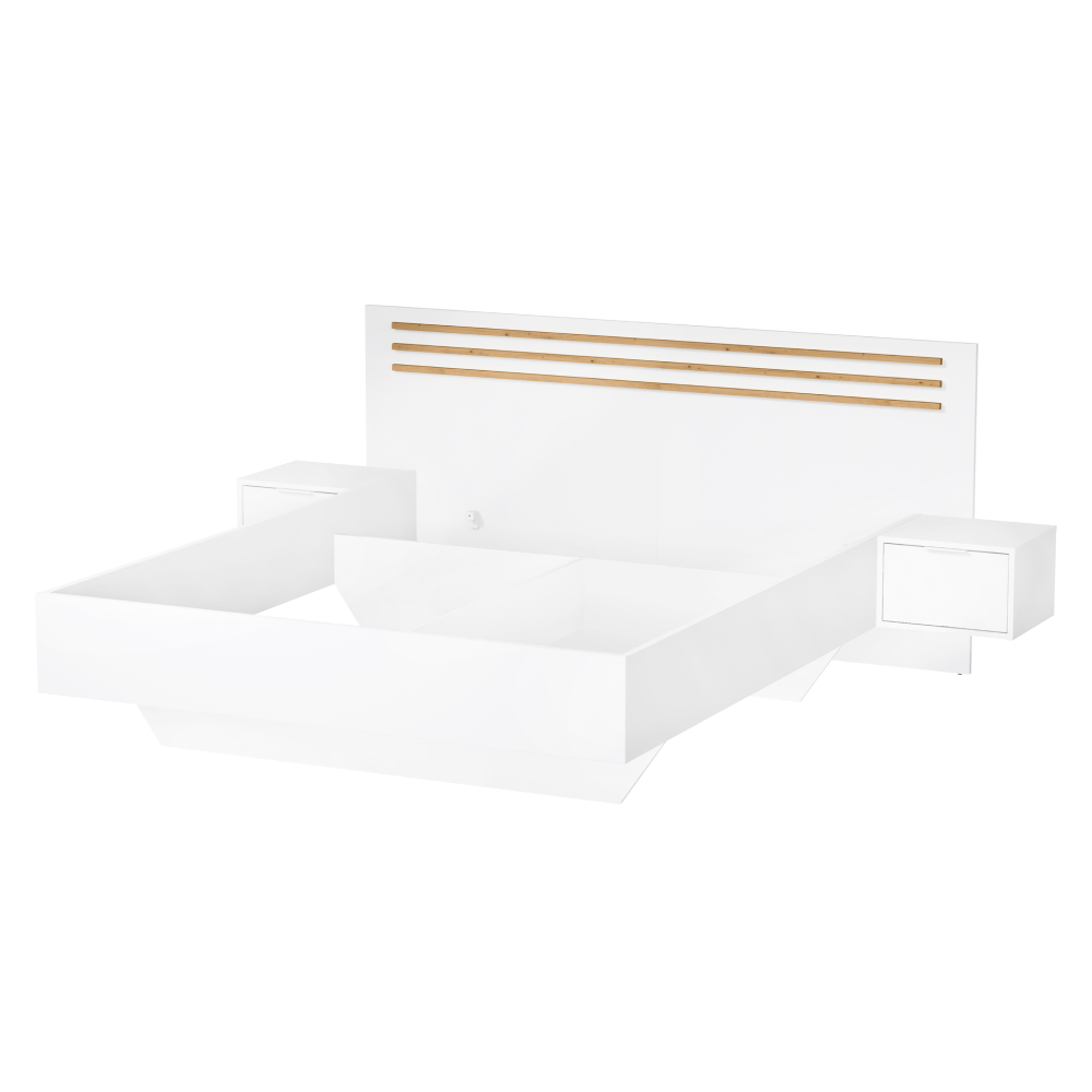 KONDELA Posteľ + 2x nočný stolík, biela/dub artisan, 160x200, FLORENS
