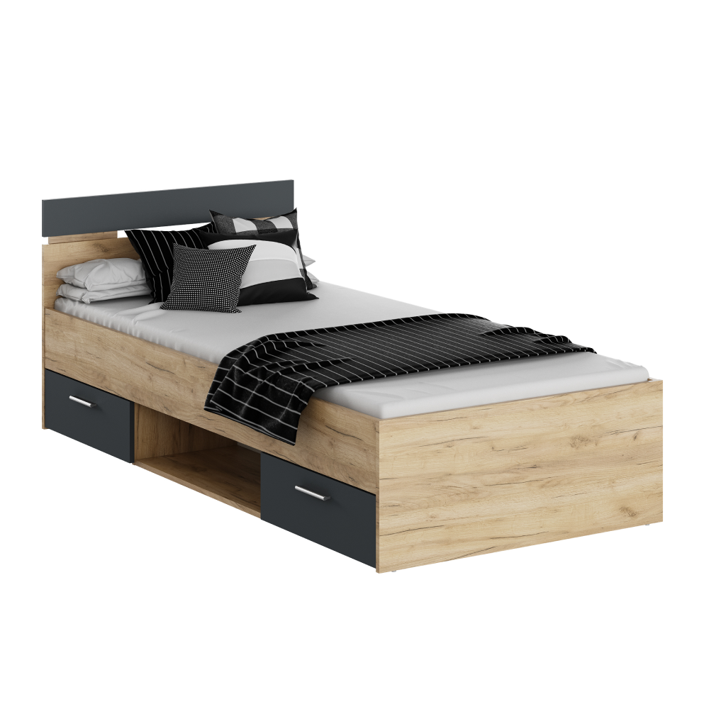 KONDELA Posteľ, 90x200, dub artisan/grafit, MICHIGAN NEW