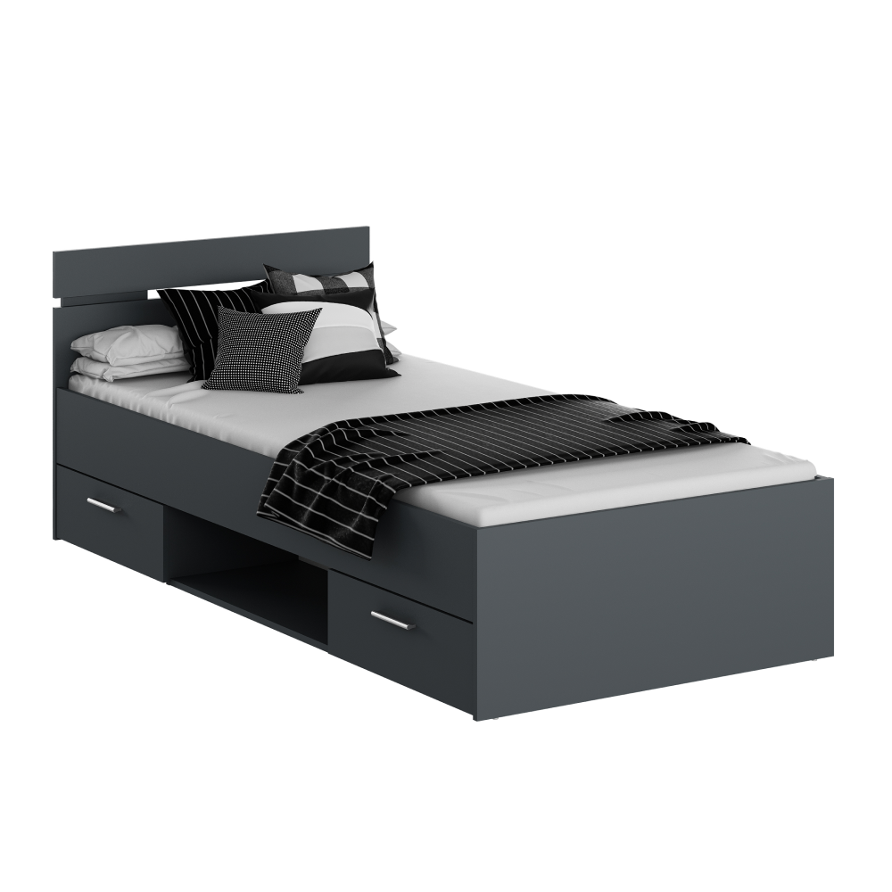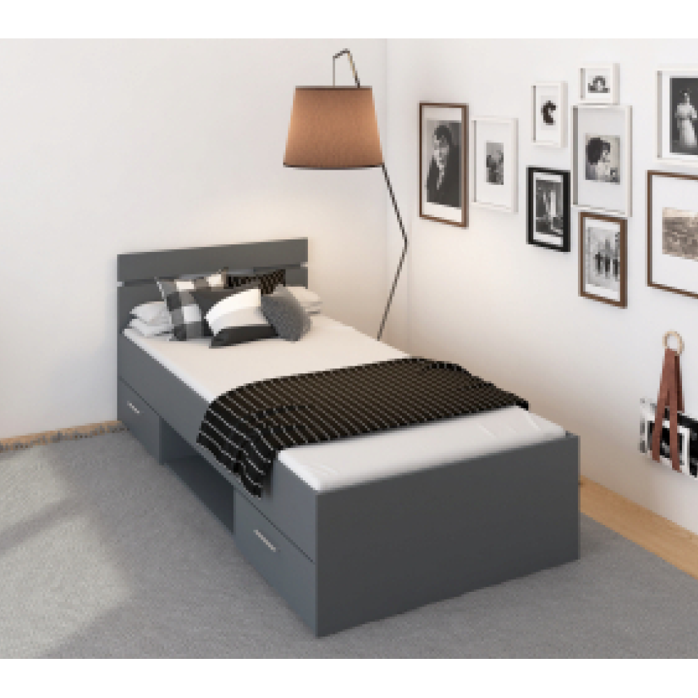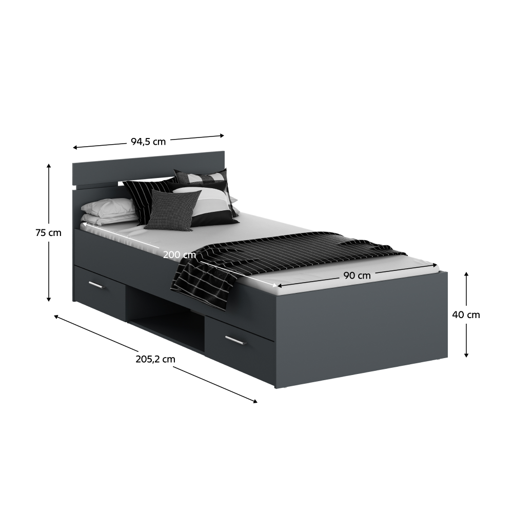 Posteľ MICHIGAN NEW so šuplíkmi a s odkladacím priestorom.Materiál: DTD laminovaná.Farebné prevedenie: grafitRozmery (ŠxHxV): 94,5x205,2x75 cm.Vnútorné rozmery šuplíka (ŠxHxV): 55,5x33,5x11 cmPlocha na spanie: 90x200 cmVýška spania: 40 cmVýška po rošt: 26 cmVýška matraca: 15 cm K posteli je možné zakúpiť rošt v pevnom ráme 90x200 a matrac s rozmerom 90x200 cm na základe našej ponuky.Nosnos na osobuť: 100 kg