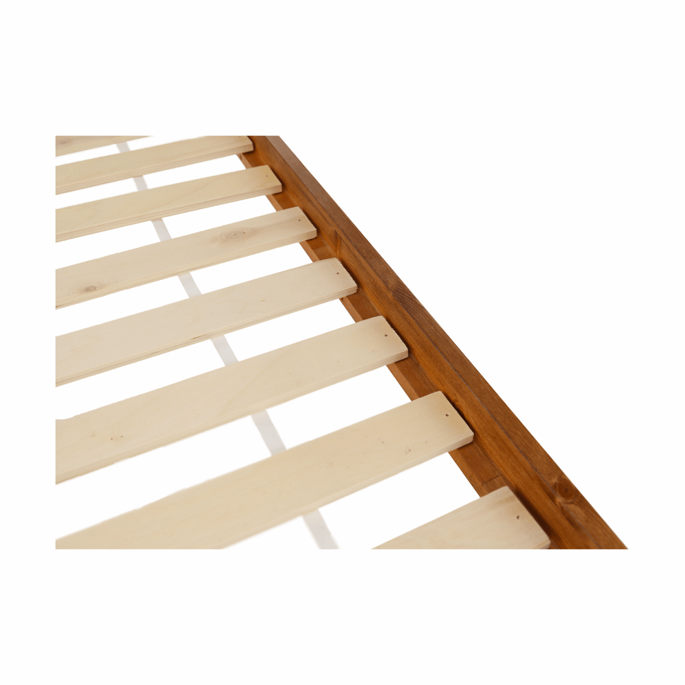 Posteľ s latkovým roštom PROVOMateriál: borovicové drevo/preglejkaFarba: dubRozmery (ŠxHxV): 170x213x82 cm Plocha na spanie: 160x200 cmHrúbka materiálu: 20 mmHrúbka materiálu nôh (ŠxH): 50x50 mmNosnosť: 90 kg na jedno lôžkoPosteľ dodávaná v demonte s rolovaným roštom, bez matraca.