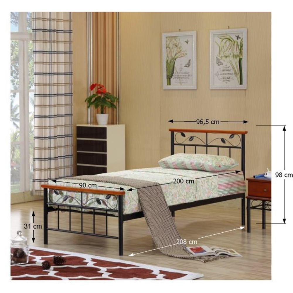 KONDELA Posteľ s lamelovým roštom, drevo čerešňa/kov, 90x200, MORENA NEW