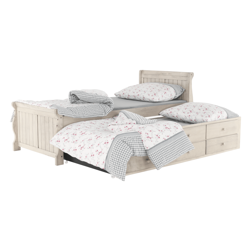 KONDELA Posteľ s prístelkou, antická biela, 90x200, ANTIKO