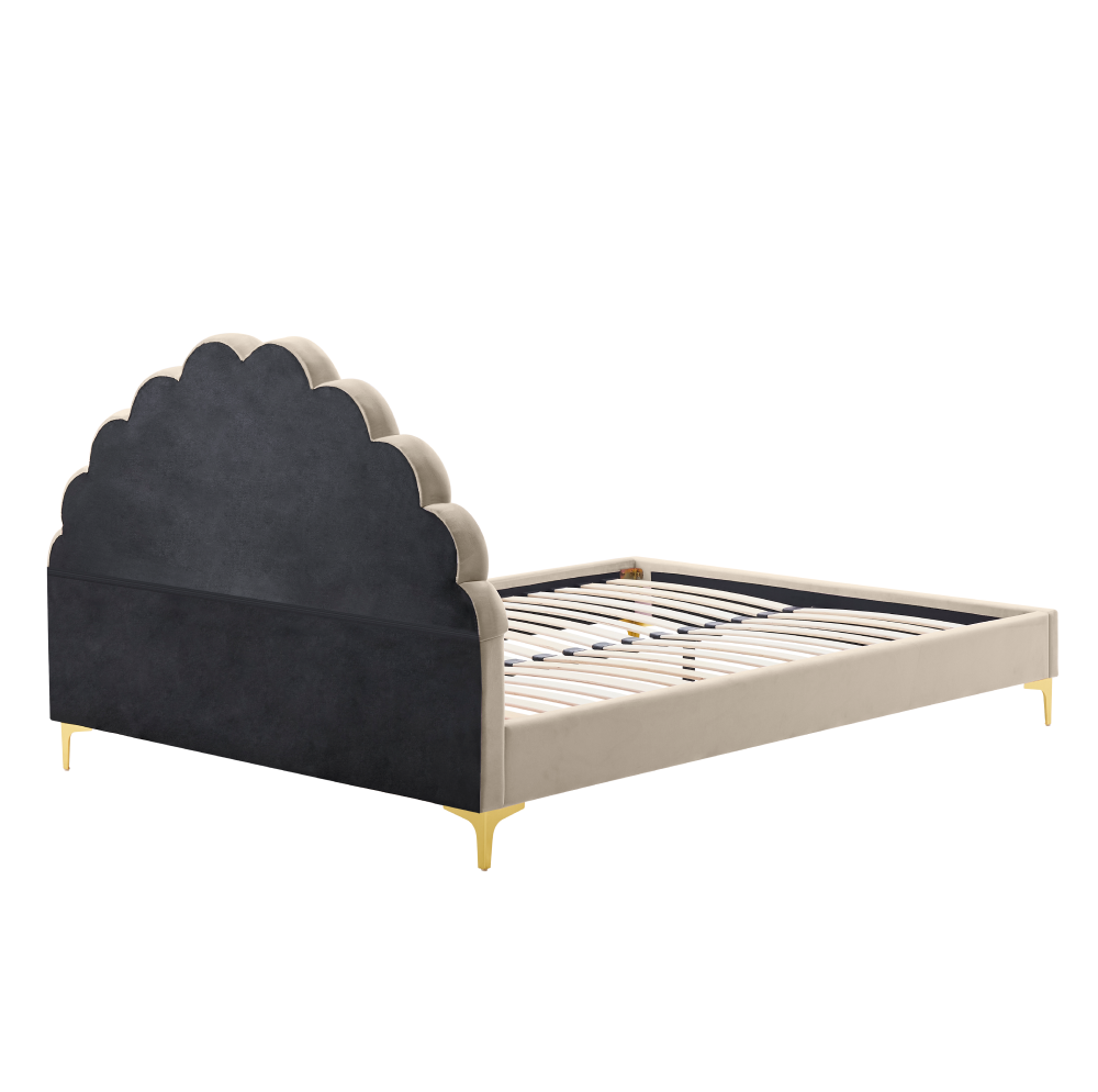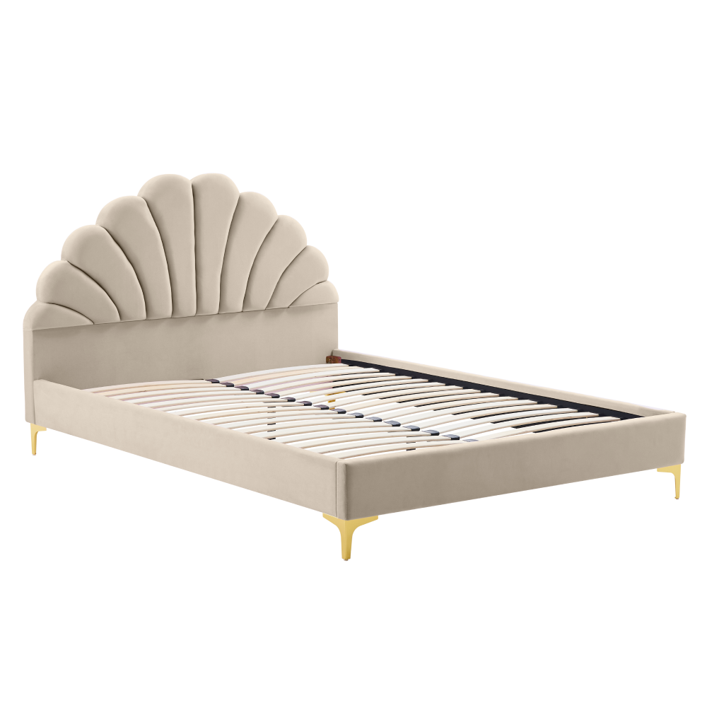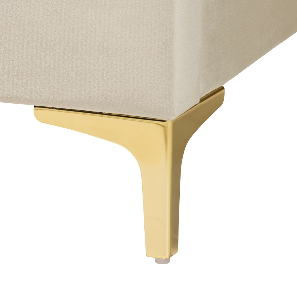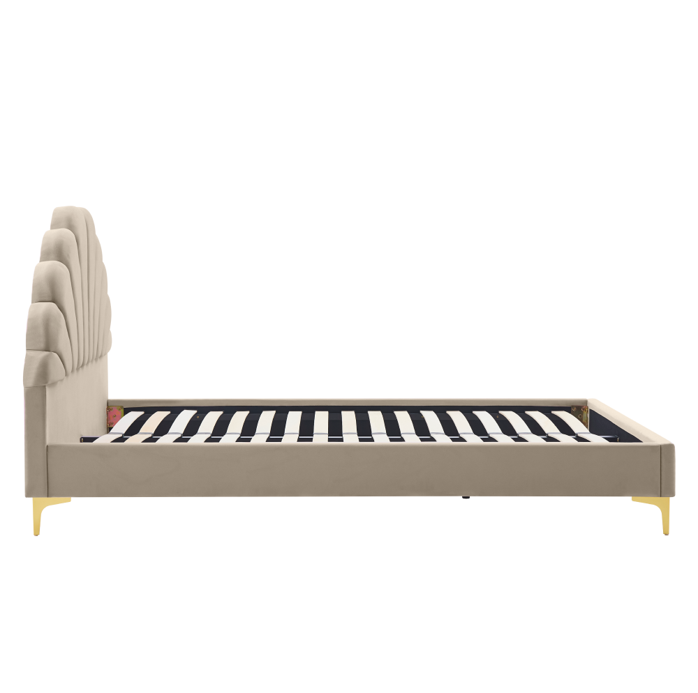 Materiál: Velvet látka/MDF/drevotrieskaOderuodolnosť textílie podľa testu Martindale: 25 000-30 000 oderovFarba: béžováRozmery (ŠxHxV): 161x207x110 cmPlocha na spanie (ŠxD): 160x200 cmVýška po rošt: 27 cmVýška bočnice: 30 cmNosnosť na osobu: 110 kgDekoratívne prešívané čelo v tvare mušleNa nožičkáchMateriál nožičiek: kovFarba nožičiek: zlatáVýška nožičiek: 13 cmDodávaná s lamelovým roštomPriestor medzi lamelami: 5,5 cmDodávaná bez matracaOdporúčame zakúpiť matrac z našej ponukyZapustenie matraca: 3 cmOdporúčaná výška matraca: 20 cmElegantnáČalúnenáDodávané v demonte