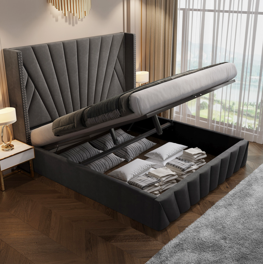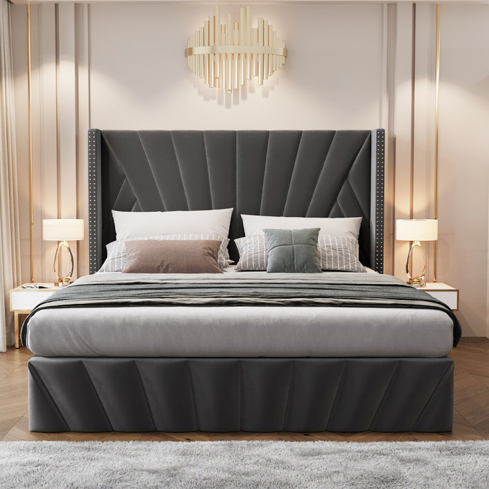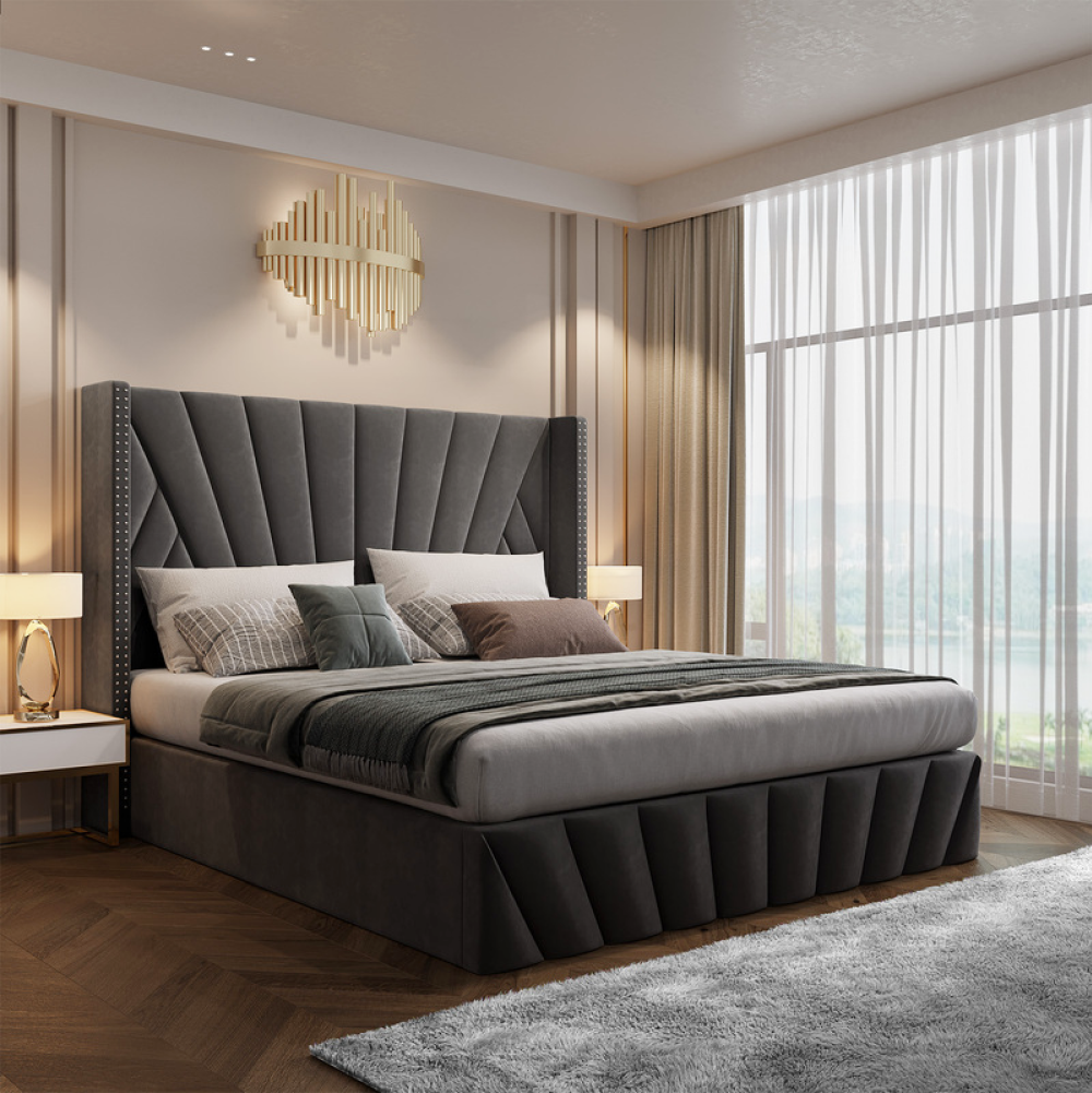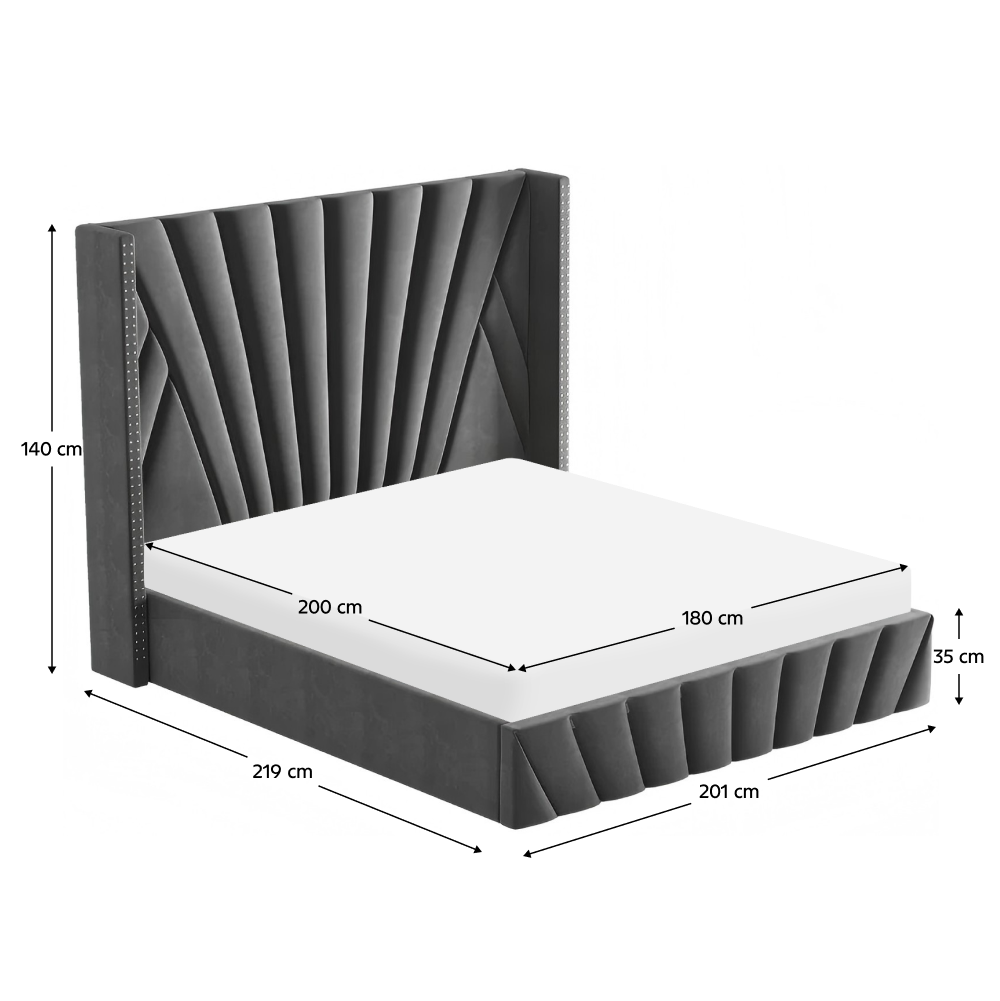 Materiál: látka Velvet/MDF/preglejka/kovOderuodolnosť textílie podľa testu Martindale: 25 000 - 30 000 oderovFarba: tmavosiváRozmery (ŠxHxV): 201x219x140 cmPlocha na spanie (ŠxD): 180x200 cmVýška po rošt: 33 cmNosnosť na lôžko: 110 kgS vysokým čelomVýška bočnice: 35 cmVýška zadné čelo: 140 cmPrešívané čeloS úložným priestoromDodávané s vyklápacím lamelový roštomPriestor medzi lamelami: 5,5 cmPlynové piestyDodávané bez matracaMožnosť zakúpiť matrace z našej ponukyOdporúčaná výška matraca: 20 cmZapustenie matraca: 2 cmElegantný dizajnDodávané v demonte