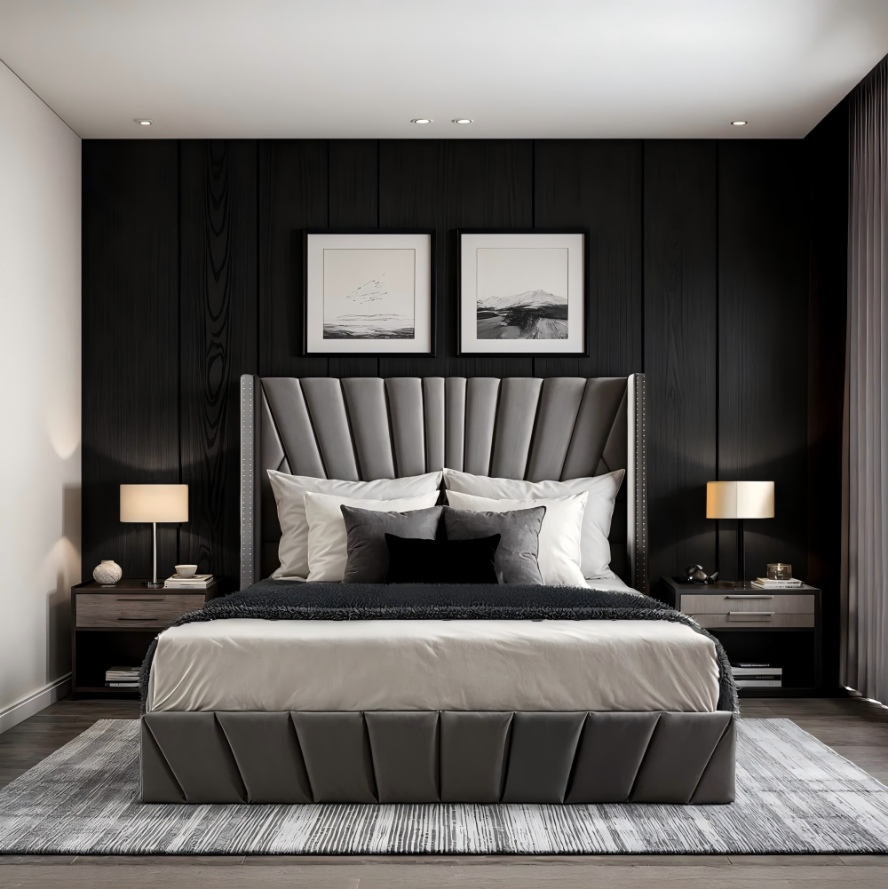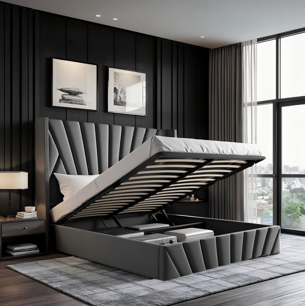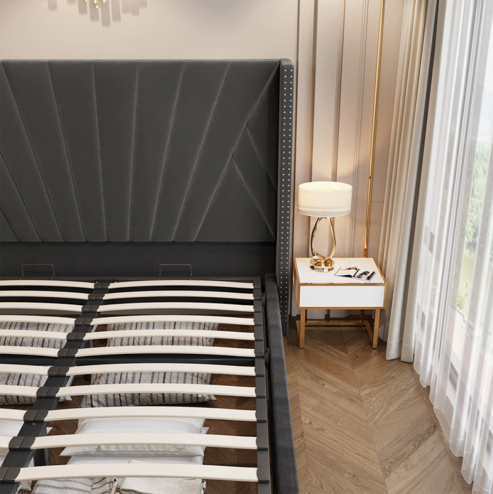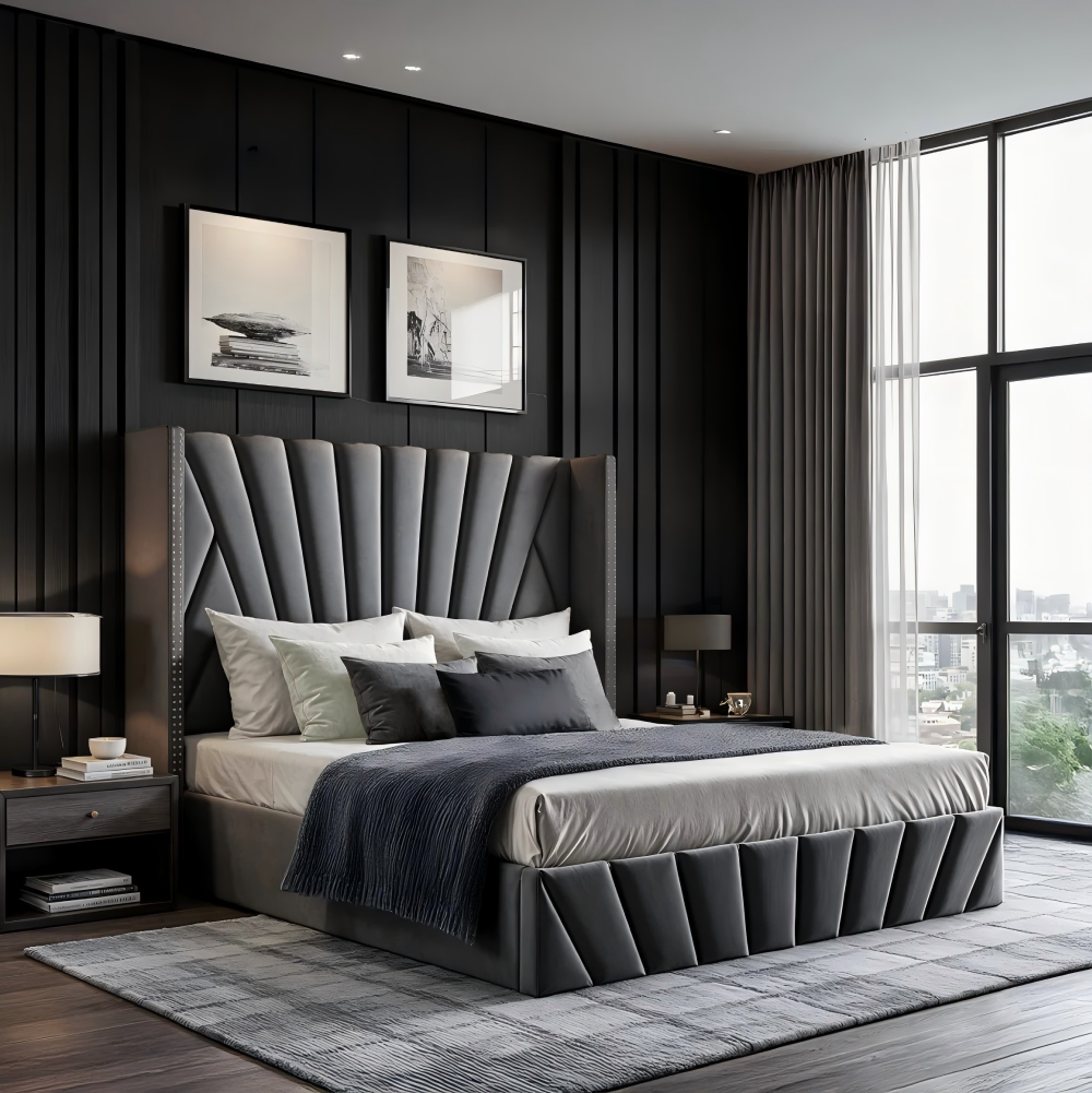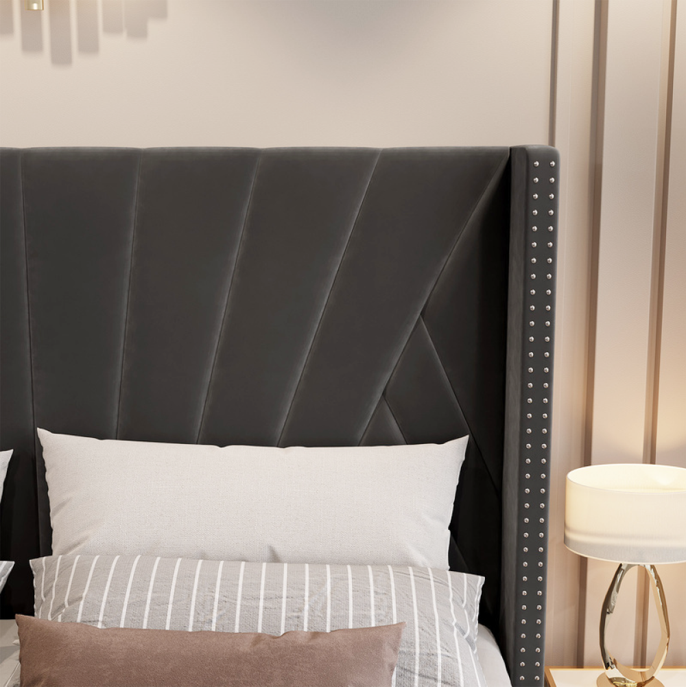 Materiál: látka Velvet/MDF/preglejka/kovOderuodolnosť textílie podľa testu Martindale: 25 000 - 30 000 oderovFarba: tmavosiváRozmery (ŠxHxV): 201x219x140 cmPlocha na spanie (ŠxD): 180x200 cmVýška po rošt: 33 cmNosnosť na lôžko: 110 kgS vysokým čelomVýška bočnice: 35 cmVýška zadné čelo: 140 cmPrešívané čeloS úložným priestoromDodávané s vyklápacím lamelový roštomPriestor medzi lamelami: 5,5 cmPlynové piestyDodávané bez matracaMožnosť zakúpiť matrace z našej ponukyOdporúčaná výška matraca: 20 cmZapustenie matraca: 2 cmElegantný dizajnDodávané v demonte