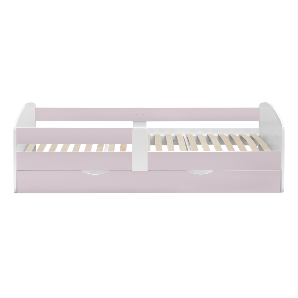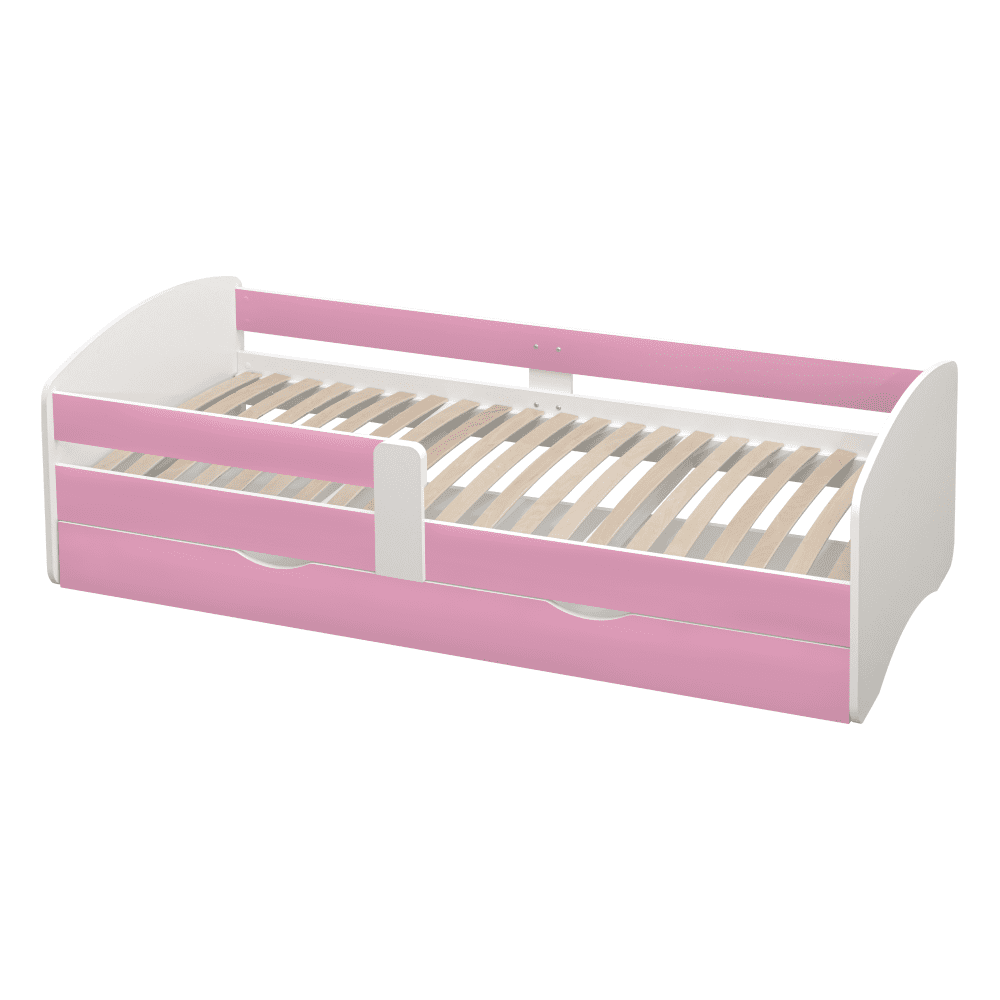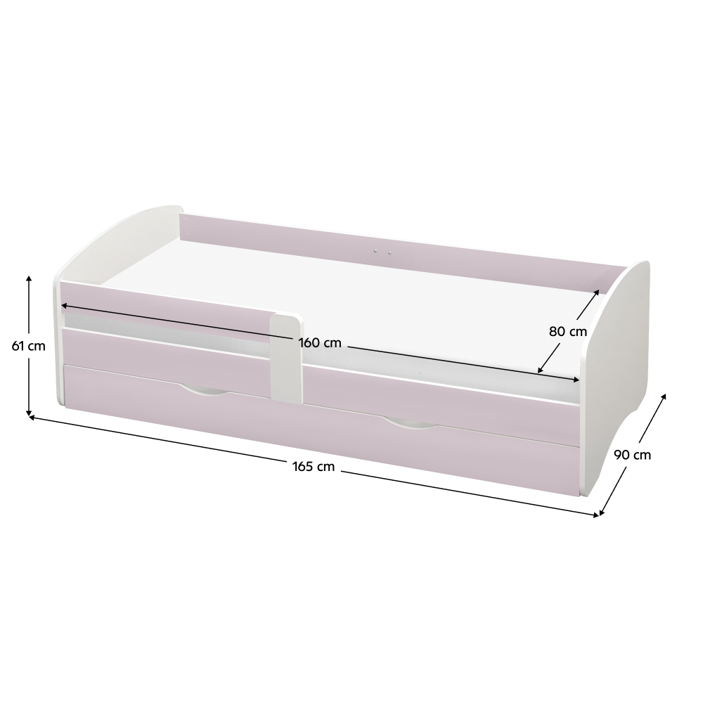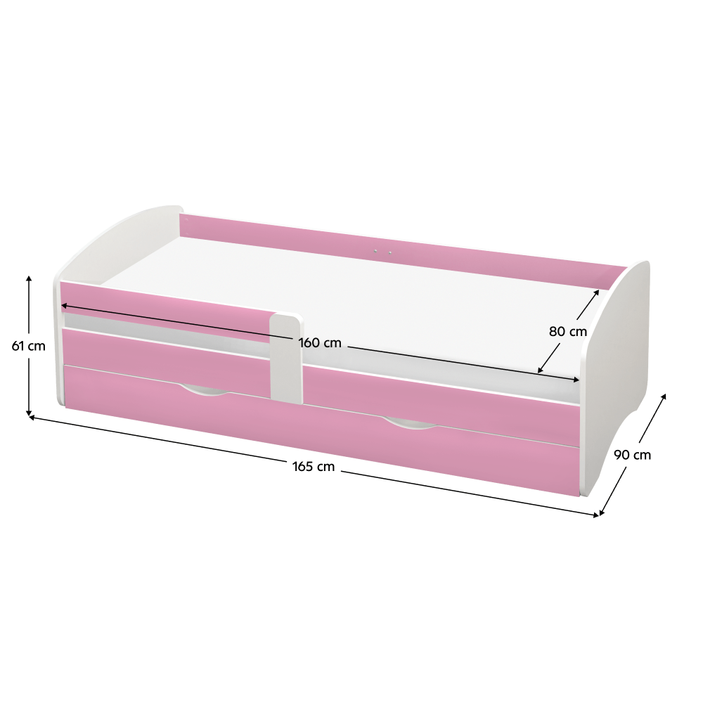 Materiál: laminovaná DTDFarba: biela/ružováRozmery (ŠxHxV): 165x90x61 cmRozmery spania (ŠxD): 80x160 cmHrúbka materiálu: 1,8 cmMožnosť namontovať zábranu na ľavú alebo pravú stranuModerná a praktickáS úložným priestoromÚložný priestor na kolieskachDva šuplíkyHmotnosť: 47 kgNosnosť: 60 kgDodávaná s lamelovým roštomDodávaná bez matracaDodávaná v demonte