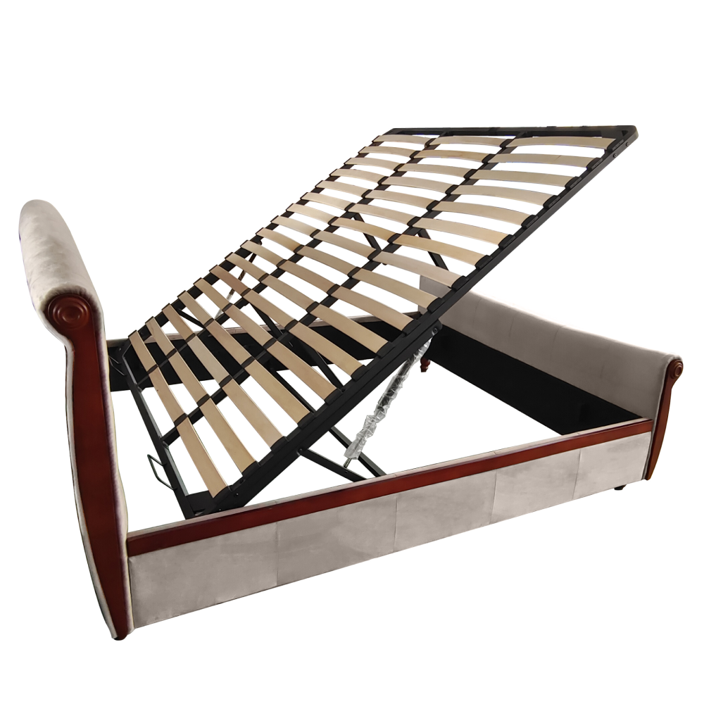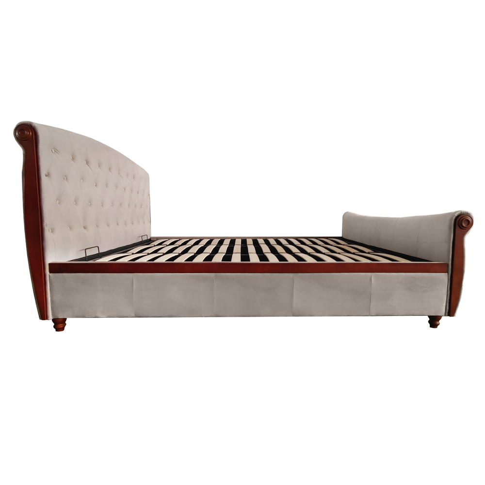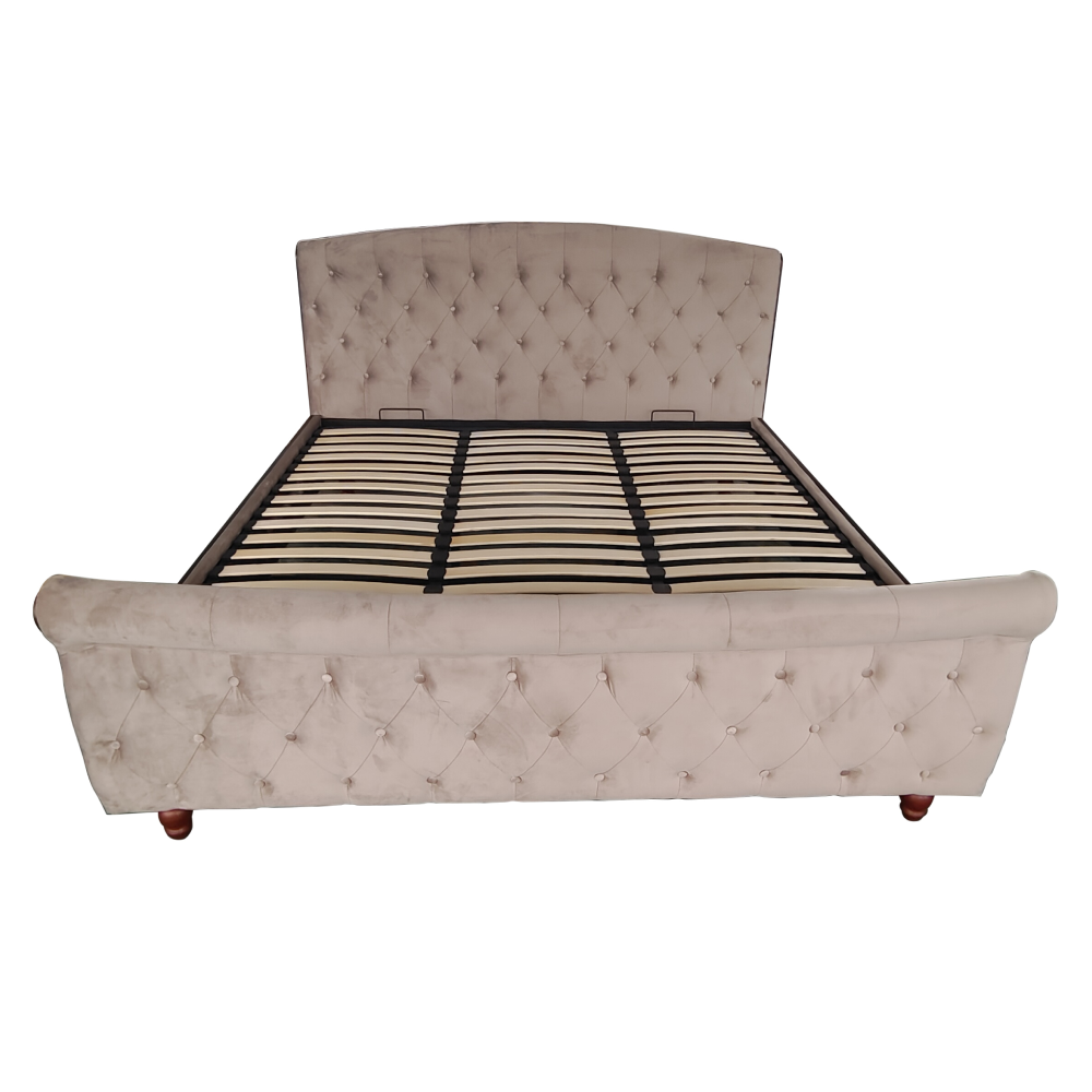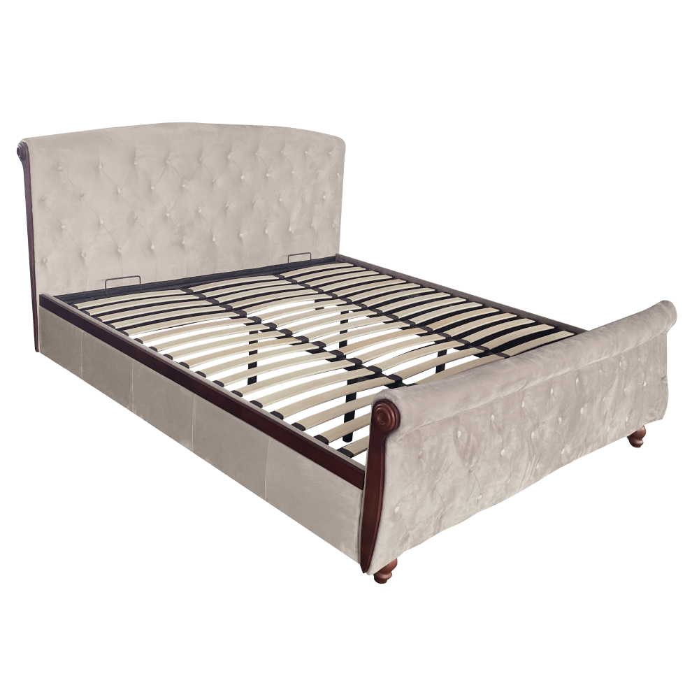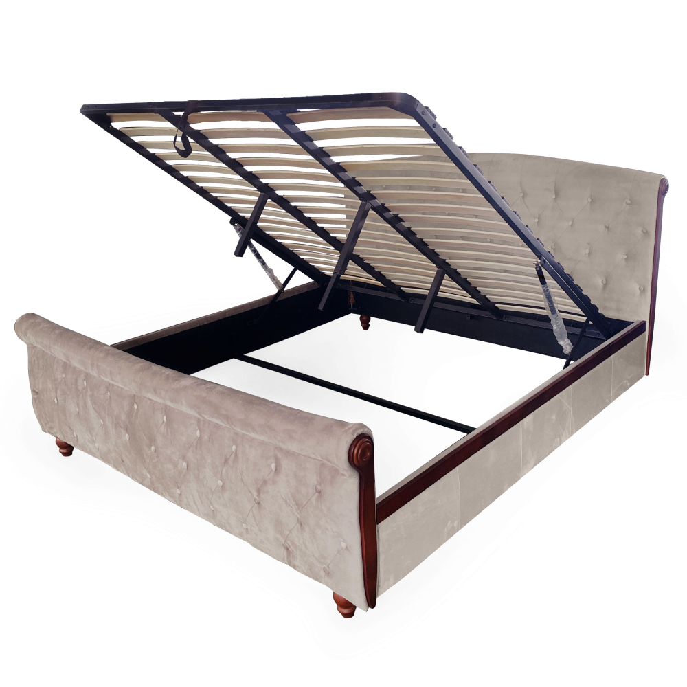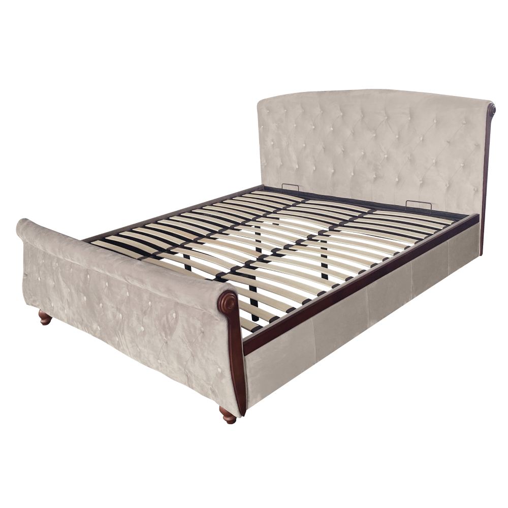 KONDELA Posteľ s úložným priestorom, 180x200, sivohnedá Taupe Velvet látka, BARETO