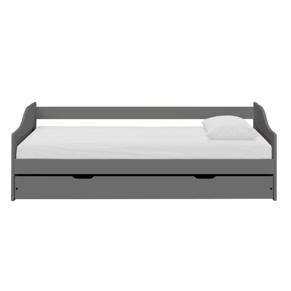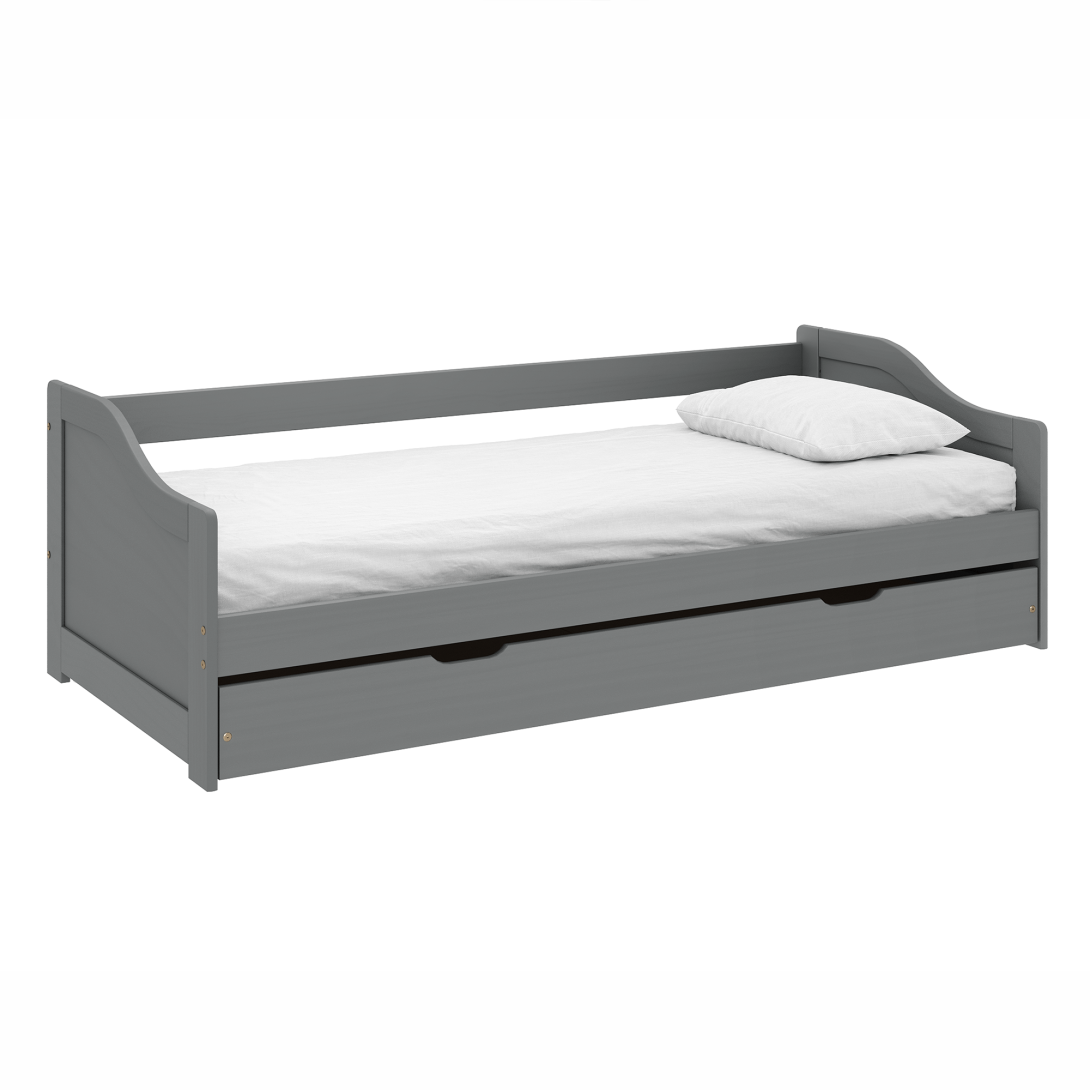 KONDELA Posteľ s výsuvnou prístelkou, sivá, masív, 90x200, LAURA NEW