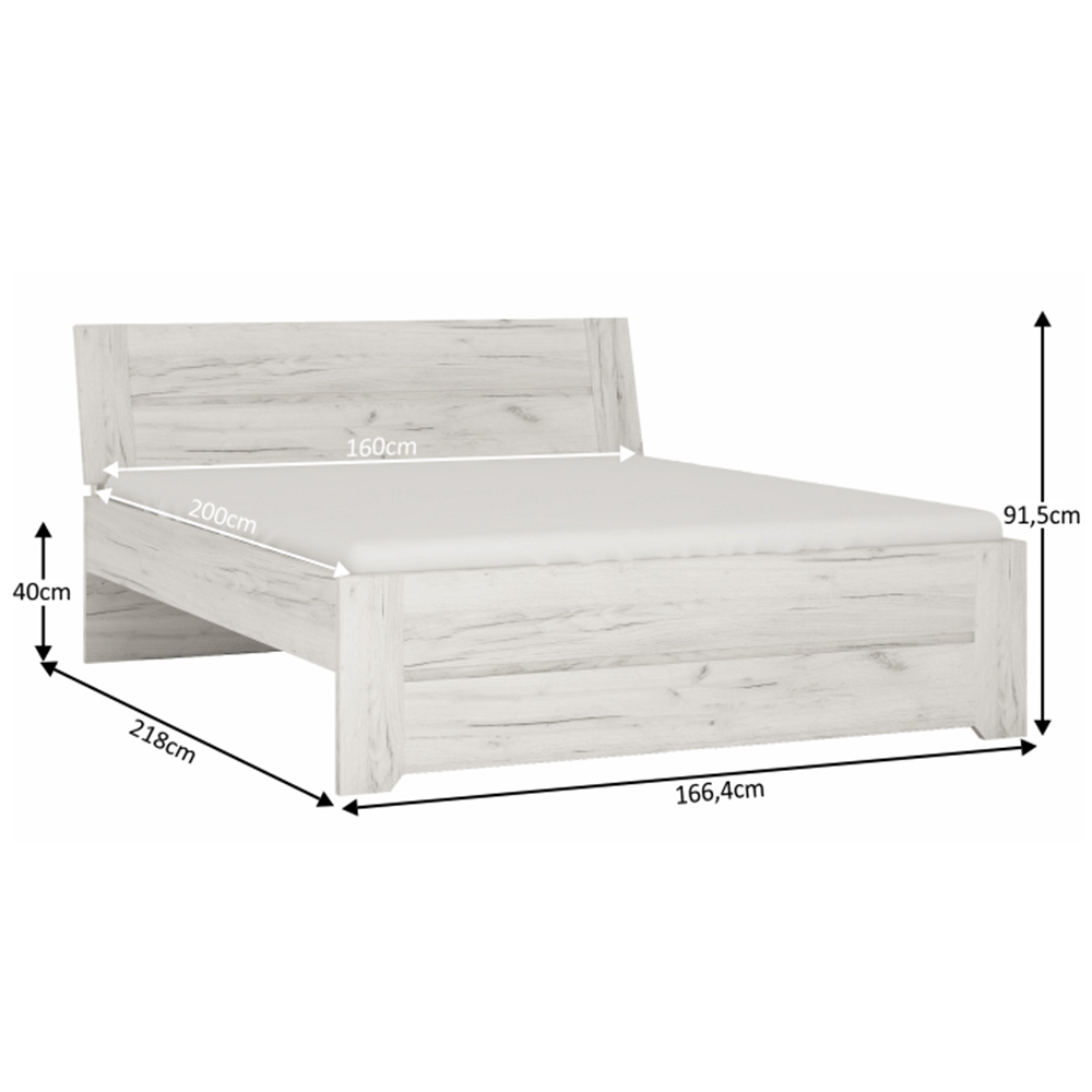 Posteľ Typ 92 zo sektorovej zostavy ANGELFarba: biela craftRozmery (ŠxHxV): 166,4x218x91,5 cmHrúbka materiálu: 16-28 mmVýška spodného priestoru od podlahy: 2,5 cmNosnosť: 120 kgDodávané bez roštu, matraca aj úložného priestoruOdporúčame zakúpiť matrac s minimálnou výškou 15 cmDodávané v demonte