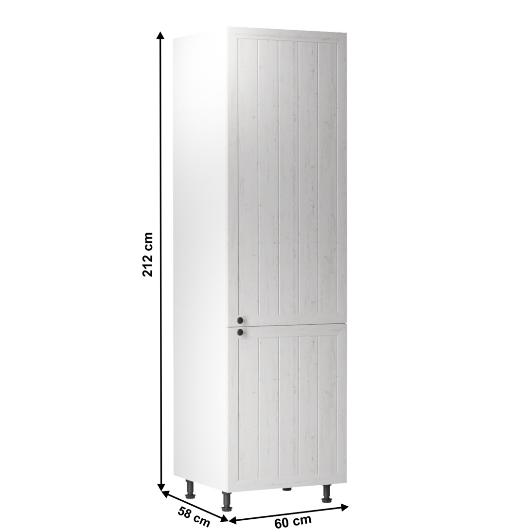 Potravinová skriňa, pravá, PROVANCE D60RPrevedenie: DTD laminovaná/MDFFarba: biela/sosna andersenRozmery (ŠxHxV): 60x58x212 cmHrúbka materiálu: 15 mmSystém tichého zatvárania dvierokDodávané v demonte.Cena sektorových skriniek je uvádzaná bez pracovnej dosky a spodnej lišty. Cena za pracovnú dosku dub lancelot je 56 Eur/bm - hrúbka 38 mm, cena za spodnú lištu je 14 Eur. Ku každej dolnej skrinke okrem D25PZ, je potrebné doobjednať 2 ks úchytov na sokel cena 1 Eur/2 ks.