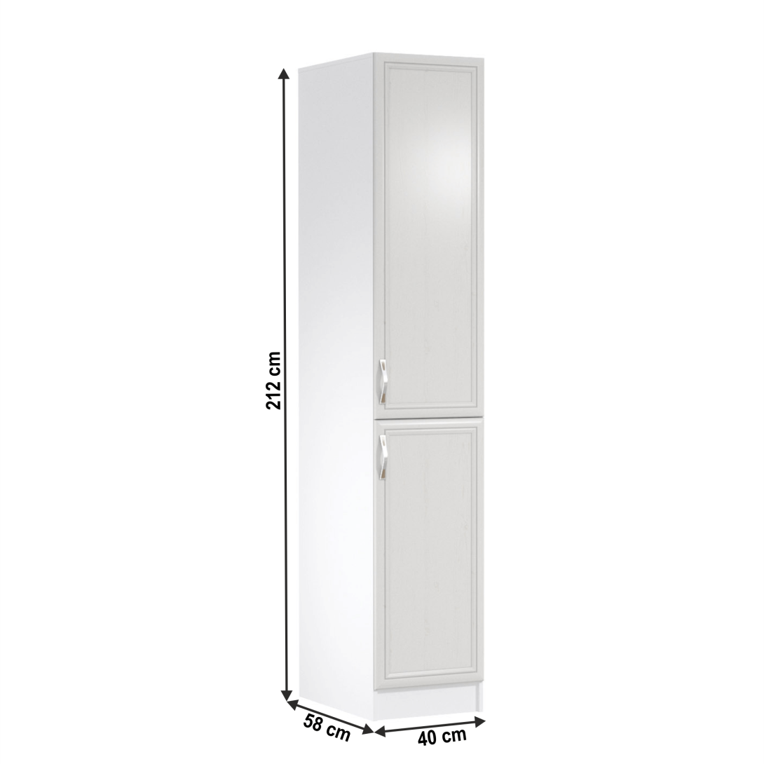 Potravinová skrinka D40SP ku kuchyni SICILIAPrevedenie: DTD laminovaná/MDF lištyFarba: biela/sosna AndersenRozmery (ŠxHxV): 40x58x212 cmHrúbka materiálu: 15 mmSpodné skrinky ku kuchyni SICILIA sú dodávané bez pracovnej dosky. Môžete si objednať pracovnú dosku vo farebnom prevedení dub pieskovec v hrúbke 2,8 cm za 49 eur/bm a pracovnú dosku vo farebnom prevedení dub Lancelot v hrúbke 3,8 cm za 56 eur/bm.