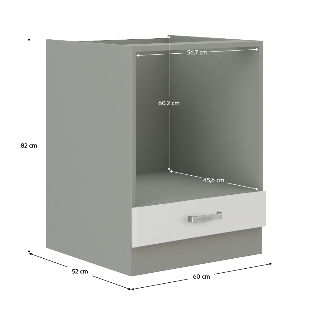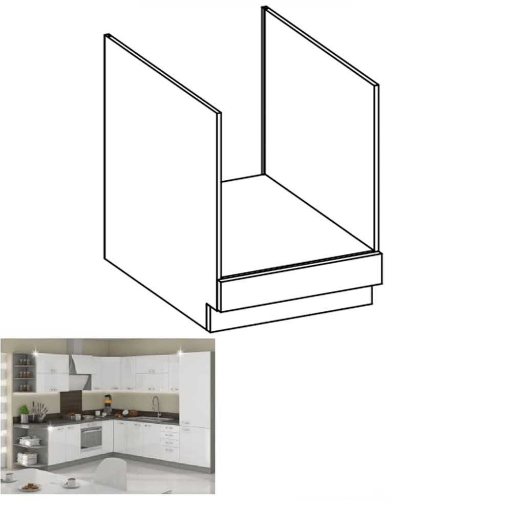 Dolná skrinka, Materiál: DTD laminovaná, Prevedenie: biela vysoký lesk, Rozmery ŠxVxH: 60x82x52 cm. Vnútorný rozmer (ŠxHxV): 56,7x45,6x60,2 cmJe určená na zakomponovanie sporáka do kuchynskej linky. Dodávané v demonte.Bez pracovnej dosky.Sektorové skrinky sú dodávané bez pracovnej dosky vrátane spodnej lišty. Možnosť dokúpiť PD metalic brown v cene 55 Eur/1m. Možnosť dokúpiť univerzálny Ľ/P drez LAY ON.