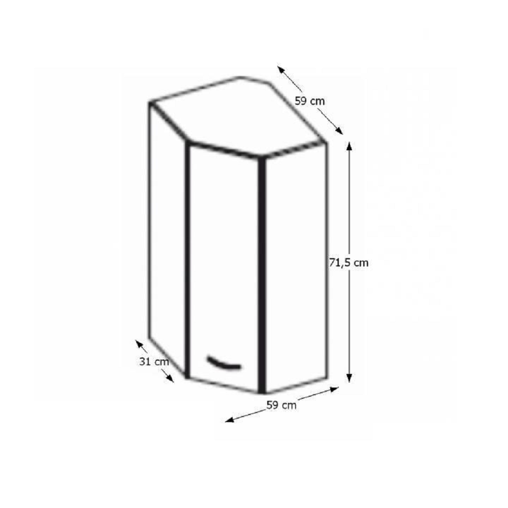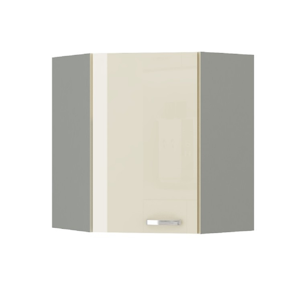 Horná skrinka, Materiál: DTD laminovaná, Prevedenie: krém vysoký lesk, Rozmery ŠxVxH: 59/59x71,5x31 cm. Dodávané v demonte.Sektorové skrinky sú dodávané bez pracovnej dosky vrátane spodnej lišty. Možnosť dokúpiť PD metalic brown v cene 55 Eur/1m. Možnosť dokúpiť univerzálny Ľ/P drez LAY ON.