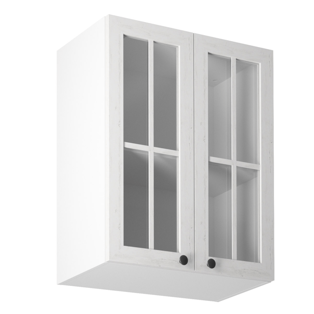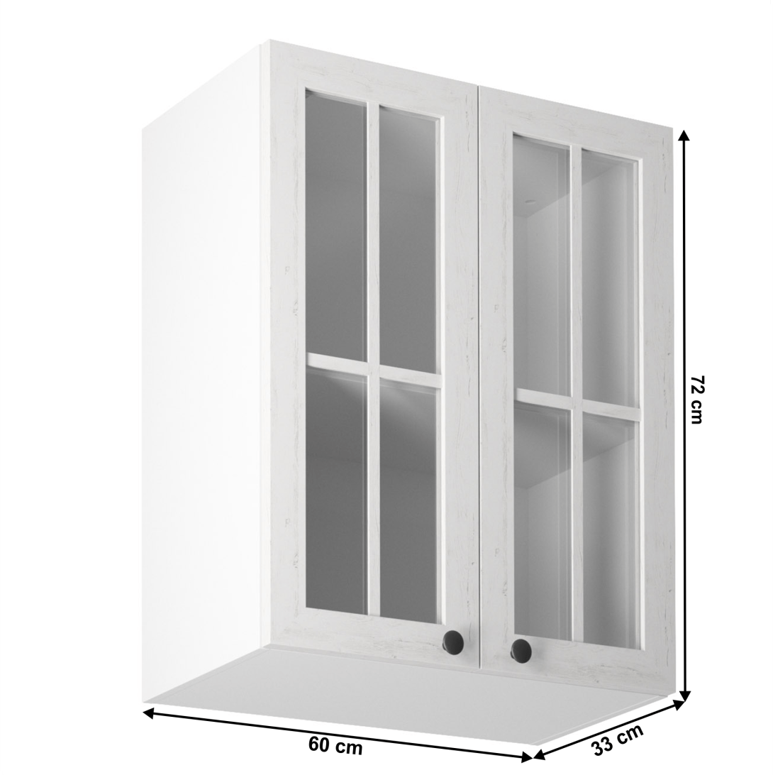 Horná skrinka s dvoma dvierkami so sklom a jednou policou ku kuchyni PROVANCEPrevedenie: DTD laminovaná/MDFFarba: biely/sosna andersenRozmery (ŠxHxV): 60x32x72 cmHrúbka materiálu: 15 mmSystém tichého zatvárania dvierokCena sektorových skriniek je uvádzaná bez pracovnej dosky a spodnej lišty. Cena za pracovnú dosku dub lancelot je 56 Eur/bm - hrúbka 38 mm, cena za spodnú lištu je 14 Eur. Ku každej dolnej skrinke okrem D25PZ, je potrebné doobjednať 2 ks úchytov na sokel cena 1 Eur/2 ks.