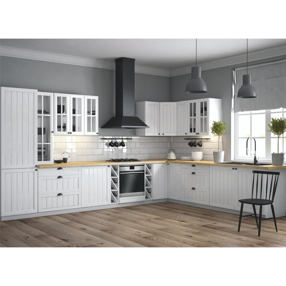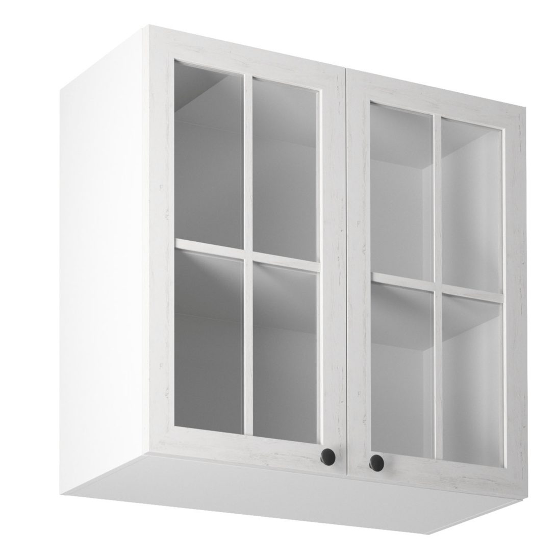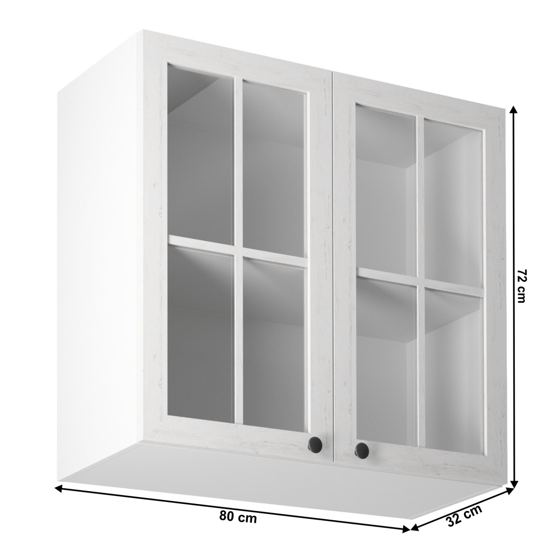 Horná skrinka s dvoma dvierkami so sklom a jednou policou ku kuchyni PROVANCEPrevedenie: DTD laminovaná/MDFFarba: biely/sosna andersenRozmery (ŠxHxV): 80x32x72 cmHrúbka materiálu: 15 mmSystém tichého zatvárania dvierokCena sektorových skriniek je uvádzaná bez pracovnej dosky a spodnej lišty. Cena za pracovnú dosku dub lancelot je 56 Eur/bm - hrúbka 38 mm, cena za spodnú lištu je 14 Eur. Ku každej dolnej skrinke okrem D25PZ, je potrebné doobjednať 2 ks úchytov na sokel cena 1 Eur/2 ks.