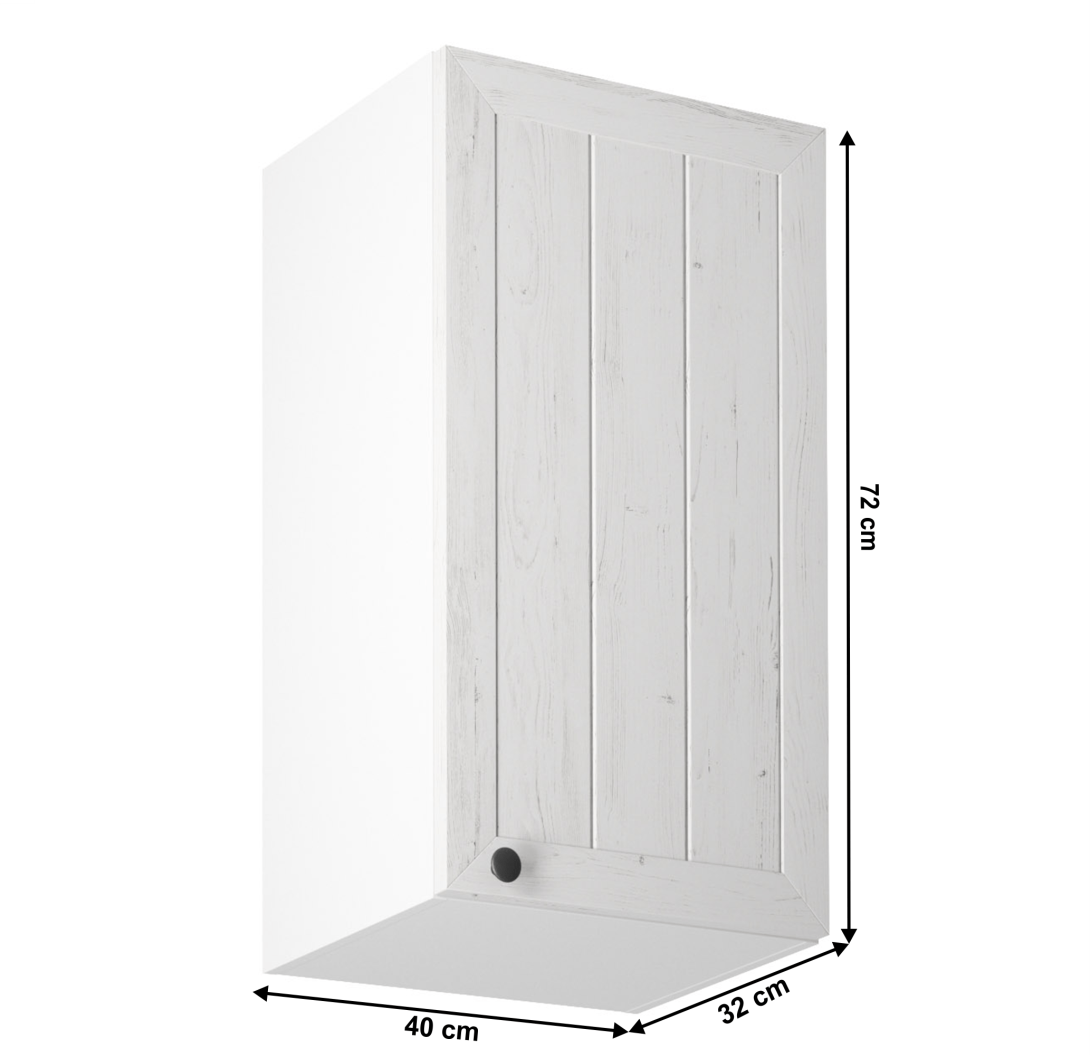 Horná, pravá skrinka s dvierkami a jednou policou ku kuchyni PROVANCEPrevedenie: DTD laminovaná/MDFFarba: biely/sosna andersenRozmery (ŠxHxV): 40x32x72 cmHrúbka materiálu: 15 mmSystém tichého zatvárania dvierokCena sektorových skriniek je uvádzaná bez pracovnej dosky a spodnej lišty. Cena za pracovnú dosku dub lancelot je 56 Eur/bm - hrúbka 38 mm, cena za spodnú lištu je 14 Eur. Ku každej dolnej skrinke okrem D25PZ, je potrebné doobjednať 2 ks úchytov na sokel cena 1 Eur/2 ks.
