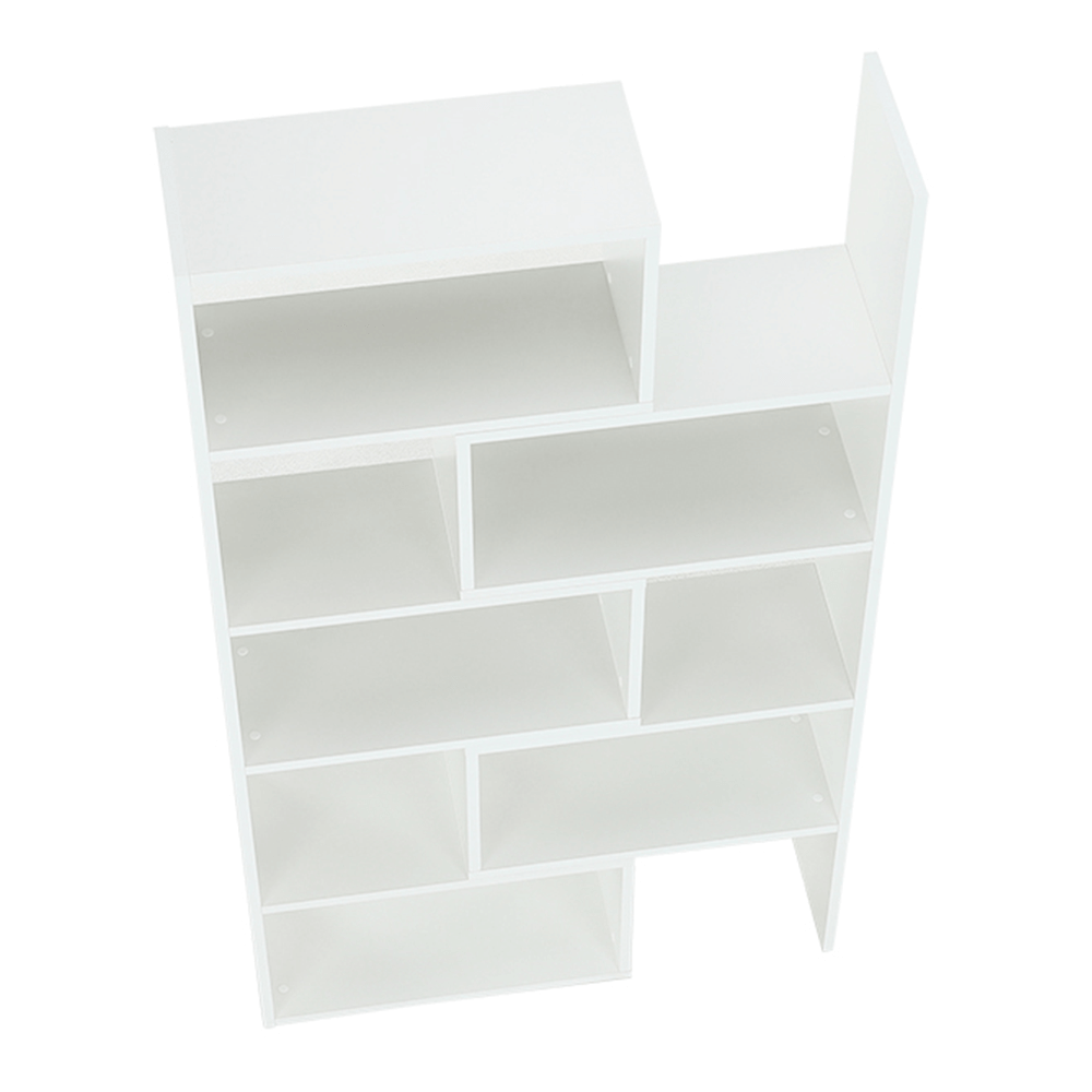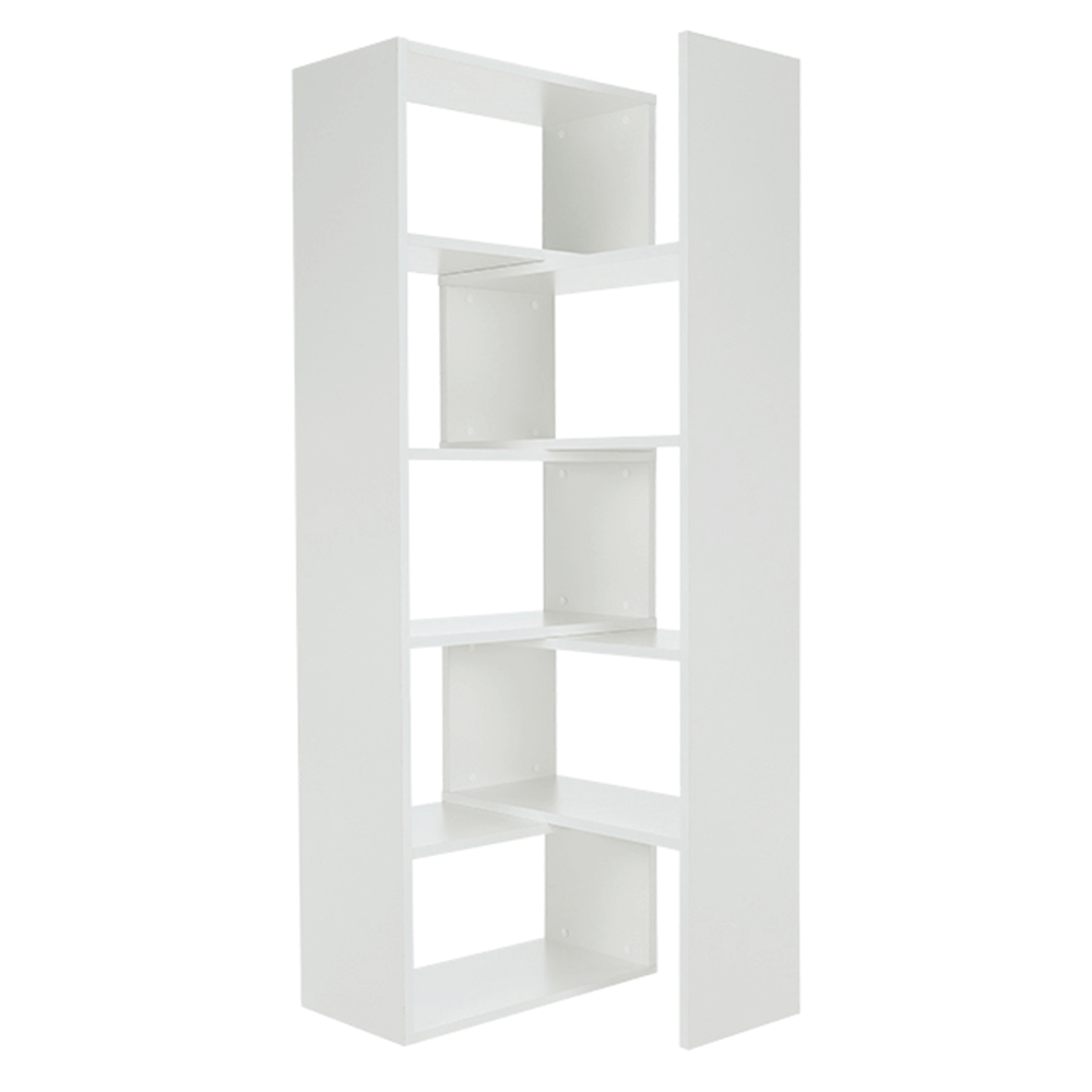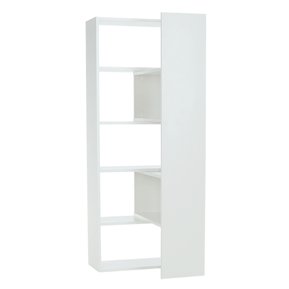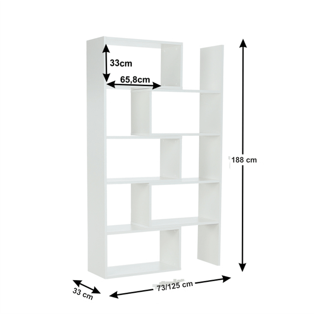 Moderný viacúčelový regál KLOE I Materiál: DTD laminovaná, Prevedenie: biela, Rozmery (ŠxHxV): 73-125x33x188 cmDodávané v demonte.