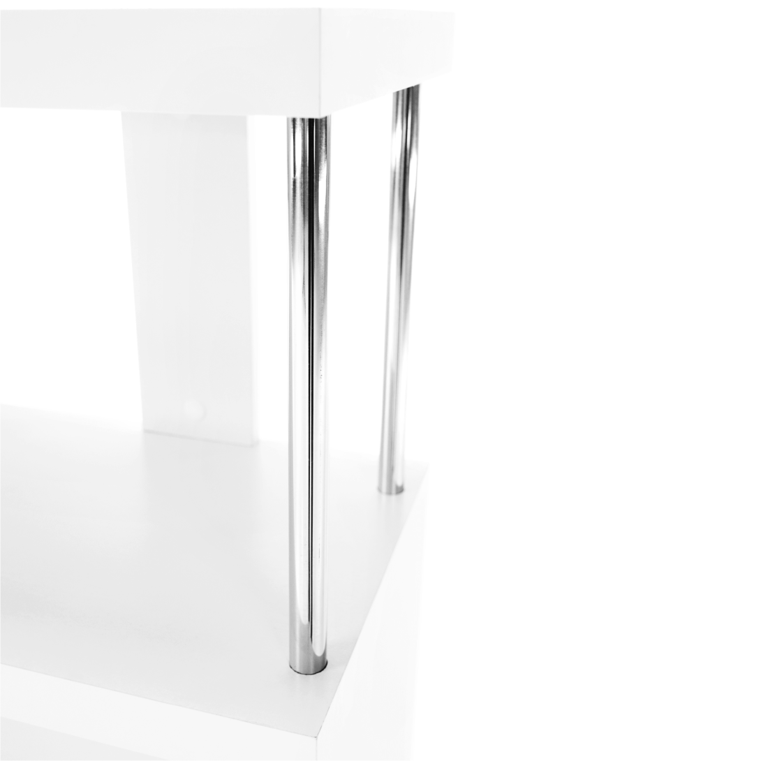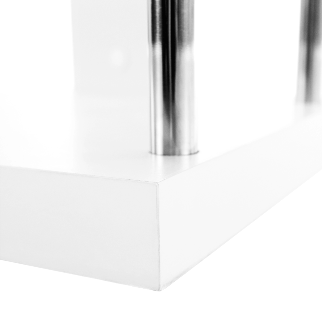 Viacúčelový regál BENITOMateriál: DTD laminovaná/chrómFarba:biela/jemný lesk(ŠxHxV) 110x29x97 cm. Hrúbka korpusu: 36 mmNosnosť na policu: 10 kgDodávané v demonte