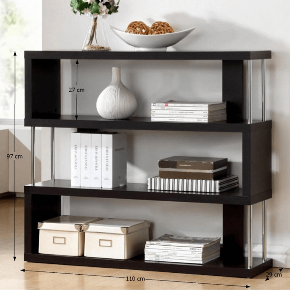 Viacúčelový regál BENITOMateriál: DTD laminovaná/chrómFarba: čierna(ŠxHxV) 110x29x97 cm. Hrúbka korpusu: 36 mmNosnosť na policu: 10 kgDodávané v demonte.