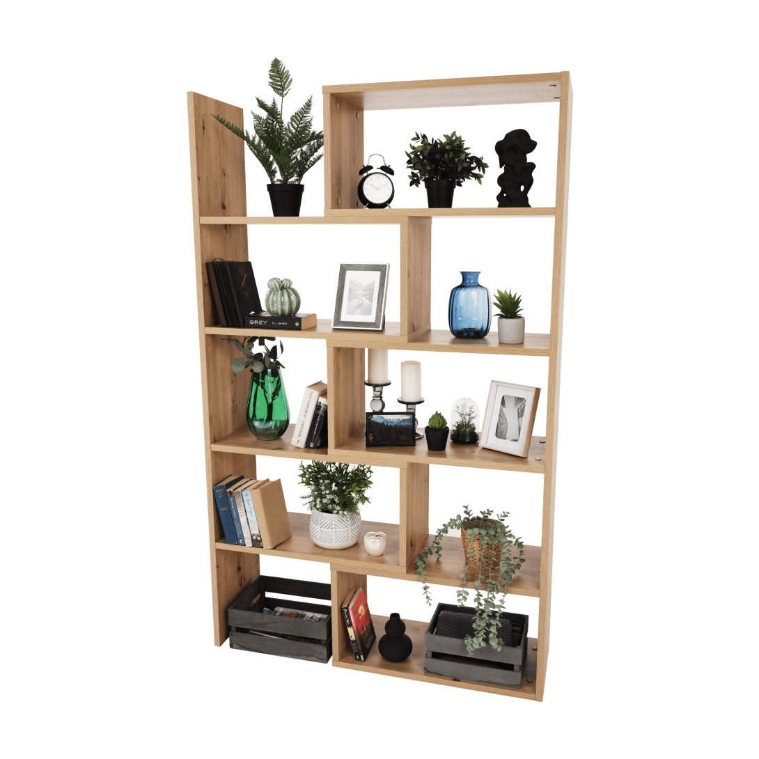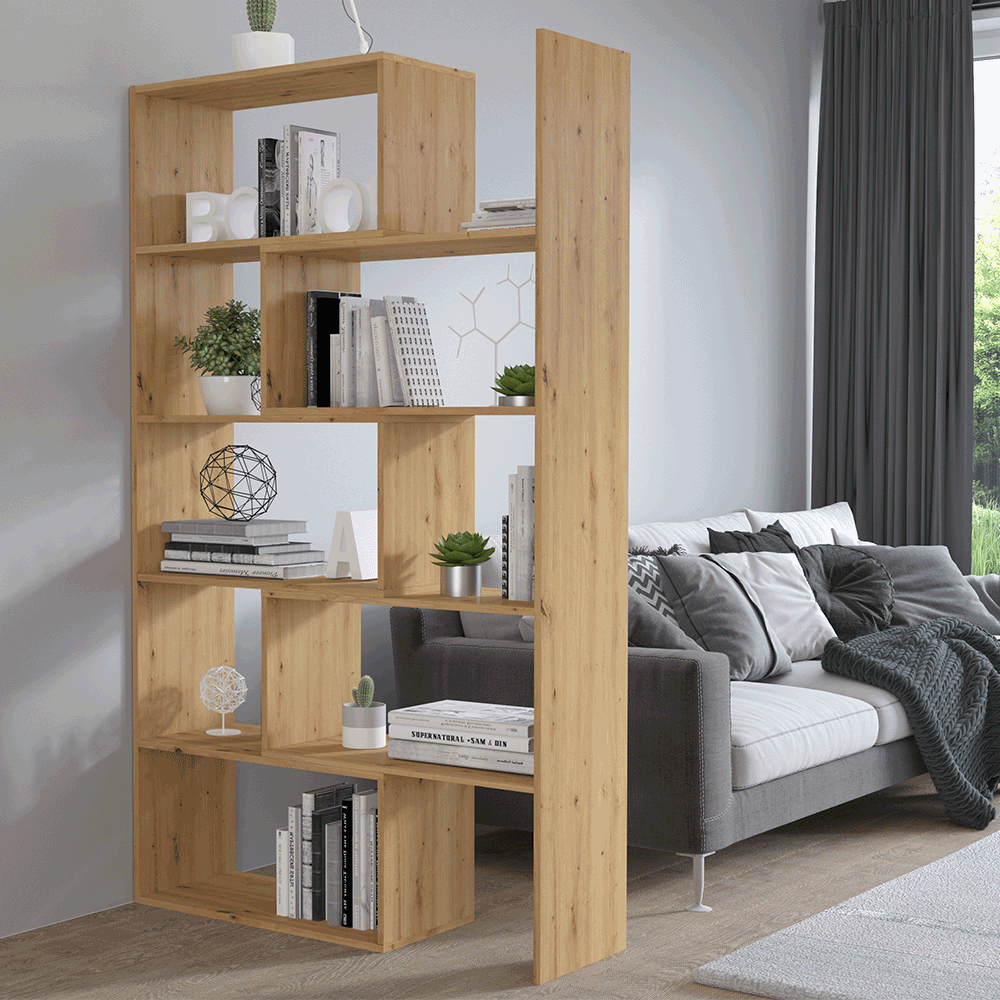 Moderný viacúčelový regálový systém s mnohostranným využitím, Materiál: DTD laminovaná, Prevedenie: dub artisanRozmery (ŠxHxV): 73-125x33x188 cm Dodávané v demonte