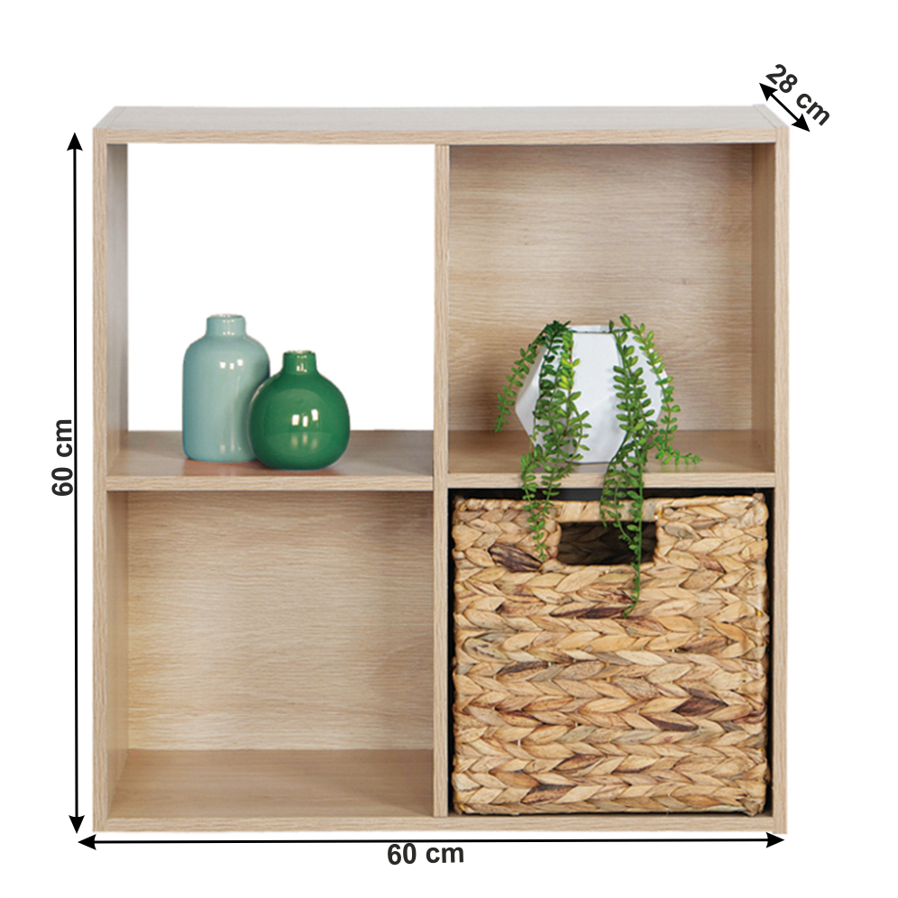 Materiál:DTD fóliovanáFarba: dub prírodnýRozmery (ŠxHxV): 60x28x60 cmOtvorenýŠtyri odkladacie priestoryProdukt nie je dodávaný s úložným boxomOdporúčame pripevniť k steneMontážny materiál na pripevnenie k stene súčasťou baleniaDodávaný v demonte
