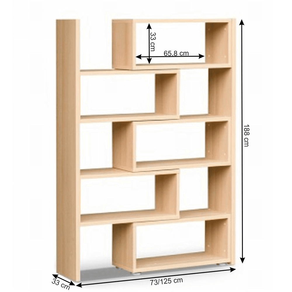 Moderný viacúčelový regálový systém s mnohostranným využitím, Materiál: DTD laminovaná, Prevedenie: dub sonoma, Rozmery (ŠxHxV): 73-125x33x188 cm Dodávané v demonte.