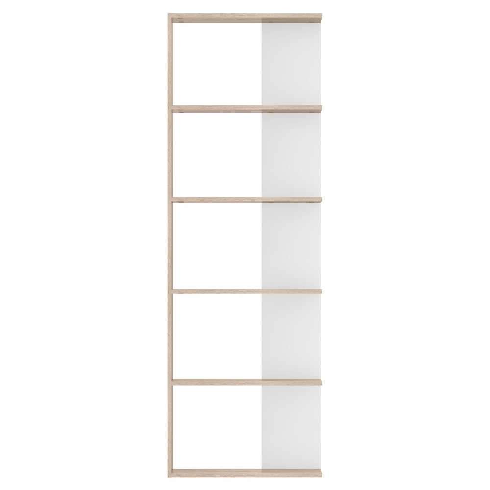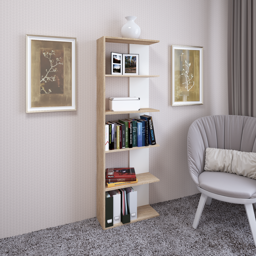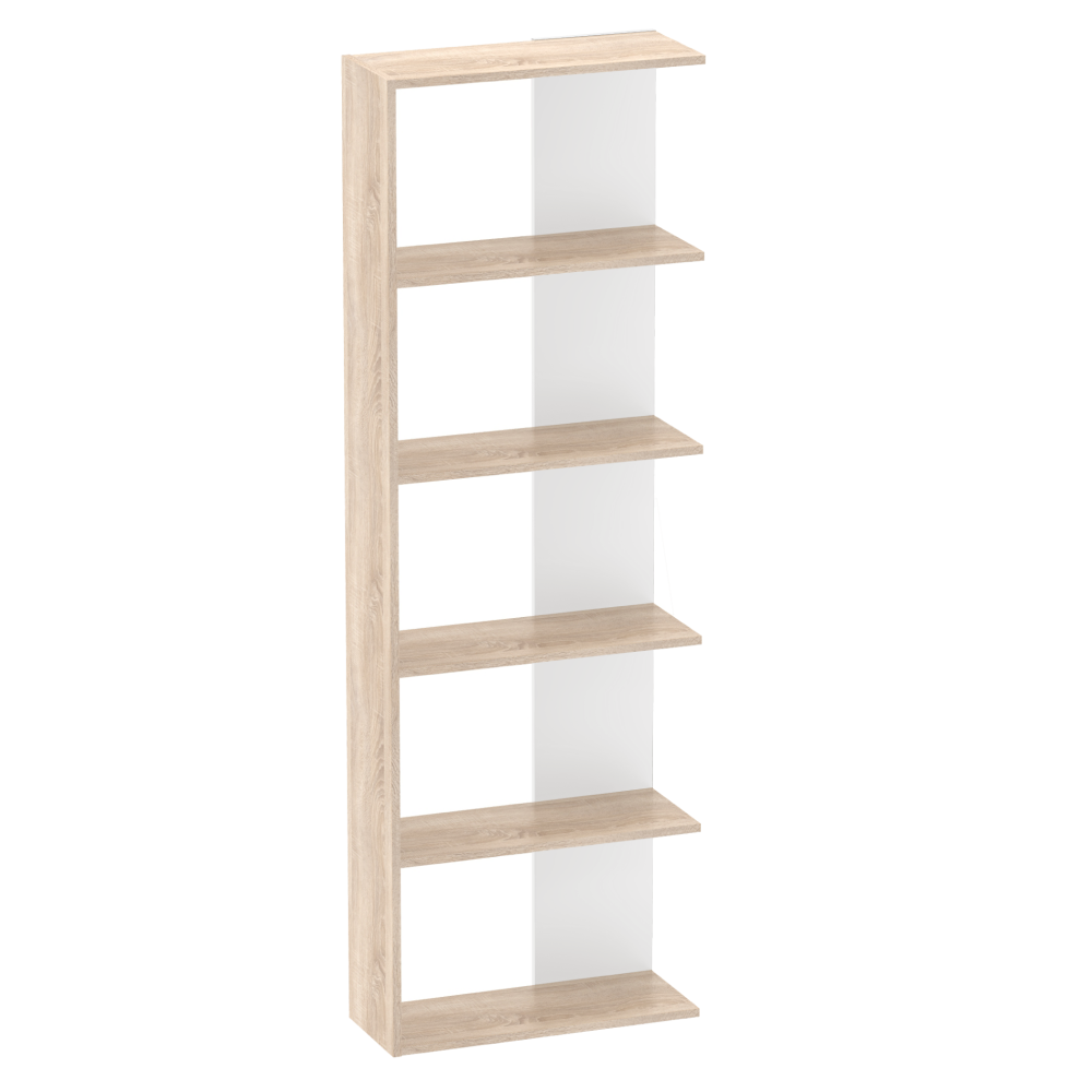 Materiál: laminovaná DTDFarba: dub sonoma/bielaRozmery (ŠxHxV): 60x25x180 cmHrúbka materiálu: 1,6 cmVýška medzi policami: 34 cmHĺbka police: 23,2 cmNosnosť políc: 5 kgOtvorený úložný priestorViacúčelovýModerný dizajnPraktickýOdporúčame pripevniť k steneKvalitný slovenský výrobokDodávané v demonte