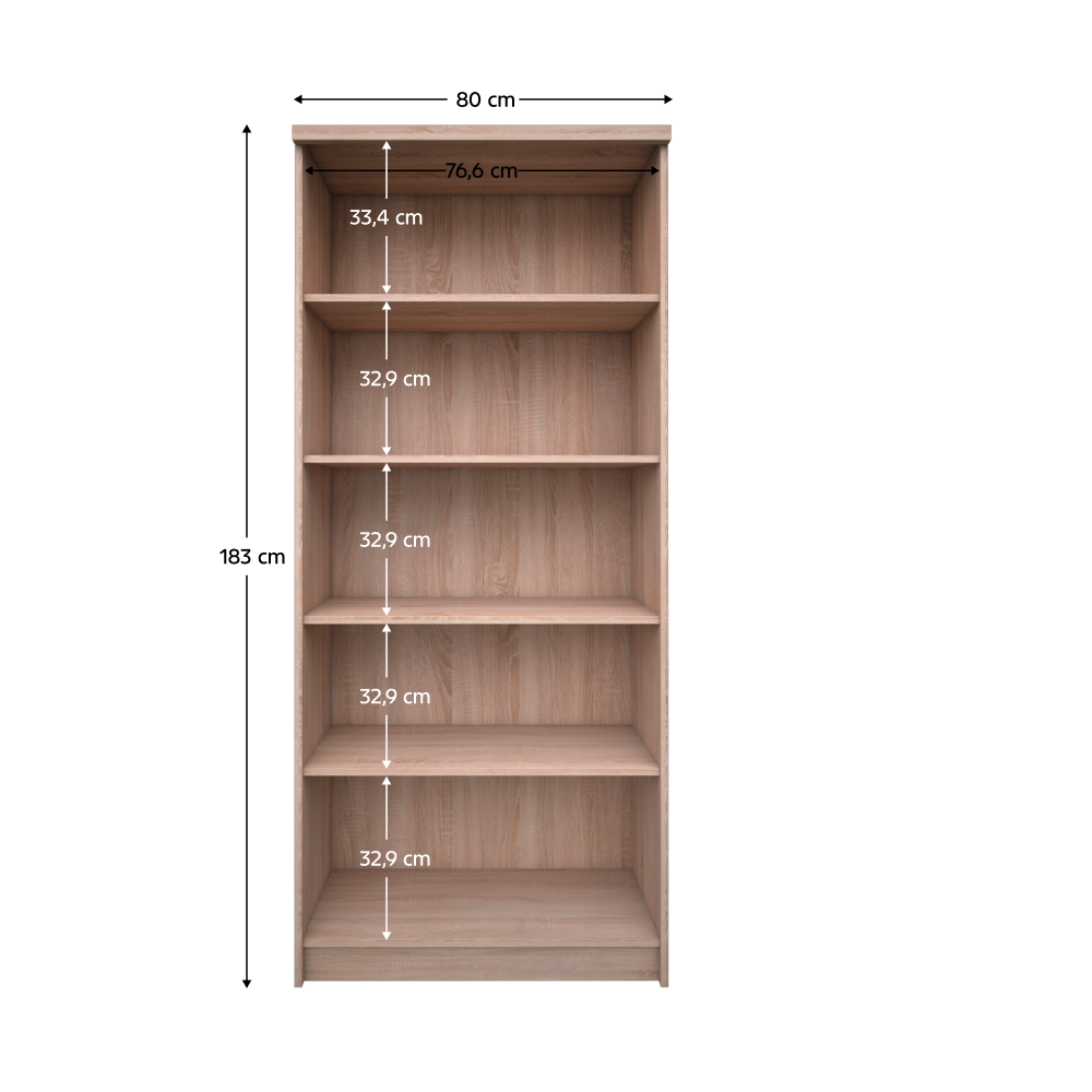 Regál otvorený vysoký 80 TOPTY TYP 27Materiál: DTD laminovanáFarba: dub sonomaRozmery (ŠxHxV):80x33x183 cmOtvorenáPoličkováÚložný priestorDodávané v demonte