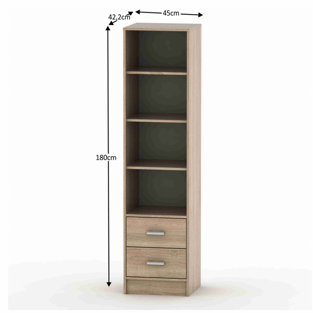 Policový regál so šuplíkmi BETTY 4Materiál: DTD laminovanáFarba: dub sonomaRozmery (ŠxHxV): 45x42,2x180 cmHrúbka materiálu korpus: 16 mmDodávané v demonte.