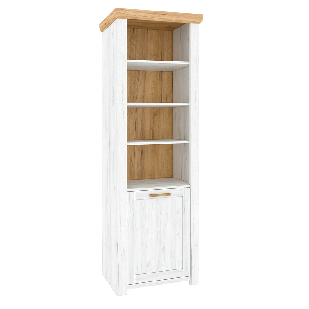 Materiál: DTD laminovaná/MDFFarba: dub craft zlatý/dub craft bielyRozmery (ŠxHxV): 68,3x41,8x199,7 cmHrúbka materiálu korpus: 16 mmHrúbka materiálu vrchná doska: 22 mmHrúbka materiálu dvierka: 19 mmVýška spodného priestoru od podlahy je 4,2 cmSkrinkaPoliceDodávané v demonte