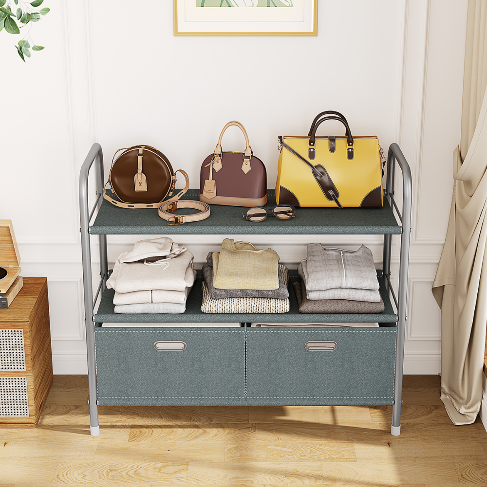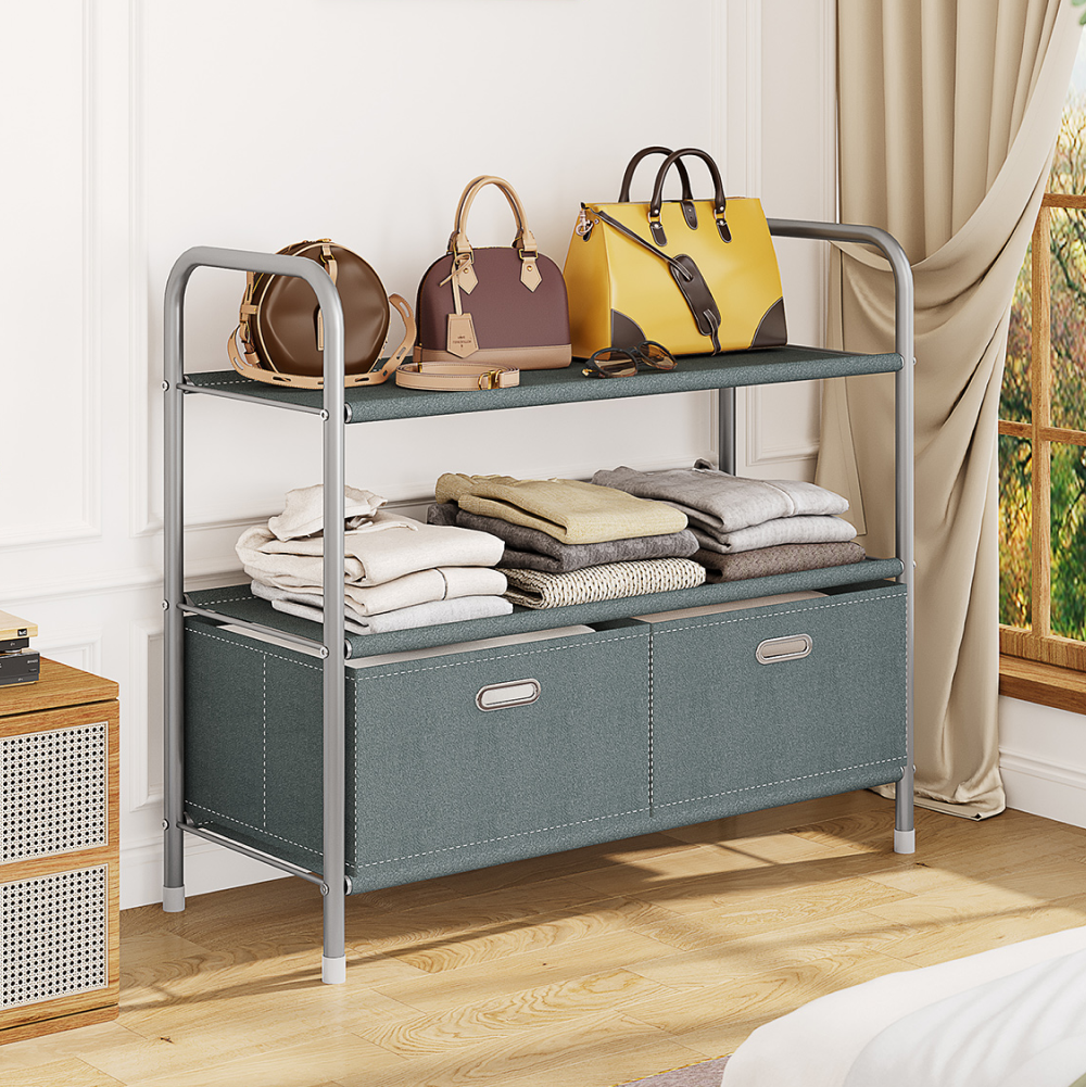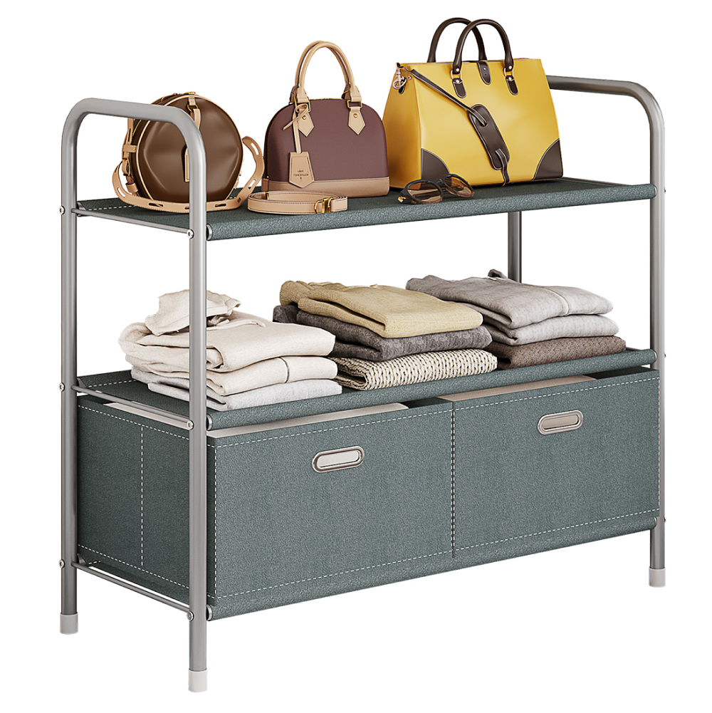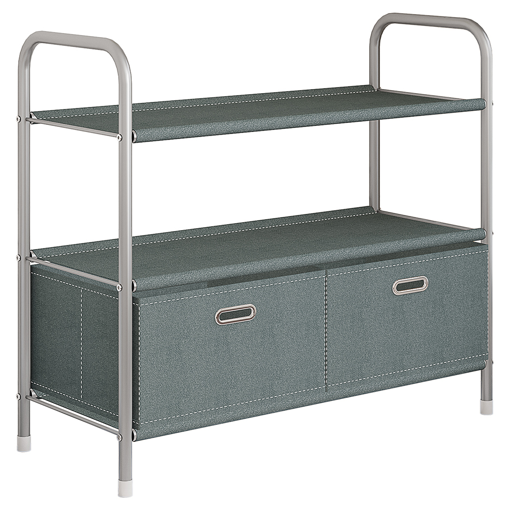 Materiál: železo/netkaná textília/plastFarba: siváRozmery (ŠxHxV): 80x30x75,5 cmHrúbka tyče: 1,6 cmDva látkové boxyRozmery boxov (ŠxHxV): 38x30x23 cmSkladacie boxyŽelezné rukoväte na boxochLátková policaNosnosť: 8-10 kgZabezpečená cirkulácia vzduchuModerný dizajnDodávané v demonte