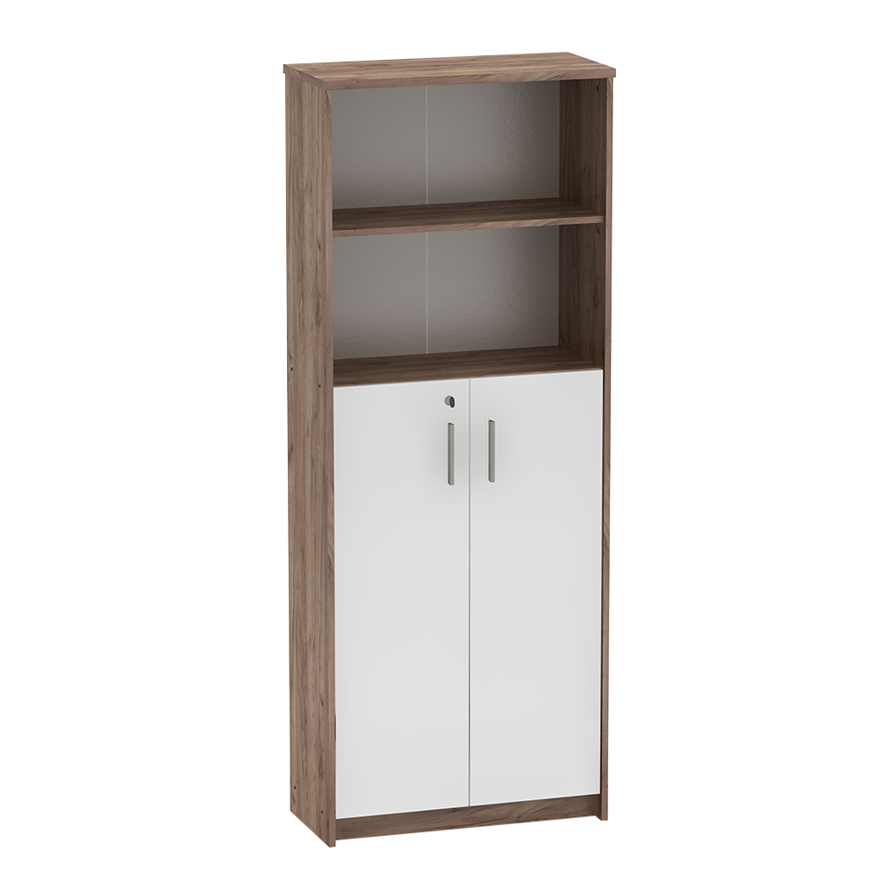 Kancelársky regál so skrinkou na zámok a otvoreným úložným priestorom JOHAN 2 NEW 10Farebné prevedenie: kraft dunkel/bielaMateriál: DTD lamiovanáRozmery (ŠxHxV): 72,5x33,8x186 cm Skrinka s dvierkami na zámokZámok je na dveráchVo vnútri skrinky dve policeRozmery skrinky (ŠxHxV): 67,6x33,8x106 cmOtvorený úložný priestorJedna policaHrúbka vnútorných políc: 1,6 cmNosnosť políc: max 5 kgHrúbka materiálu: 16/22 mm ABS hranySlovenský výrobokDodávané v demonte