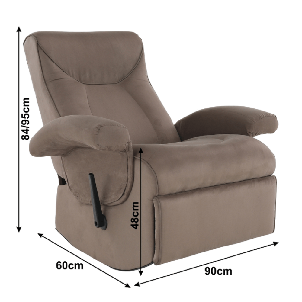 Relaxačné kreslo SUAREZmateriál: látka Oderuodolnosť textílie podľa testu Martindale: 90 000 oderovfarba: sivohnedáRozmery (ŠxHxV): 90x60x84/95 cmNosnosť: 150 kgDodávaná v demonte
